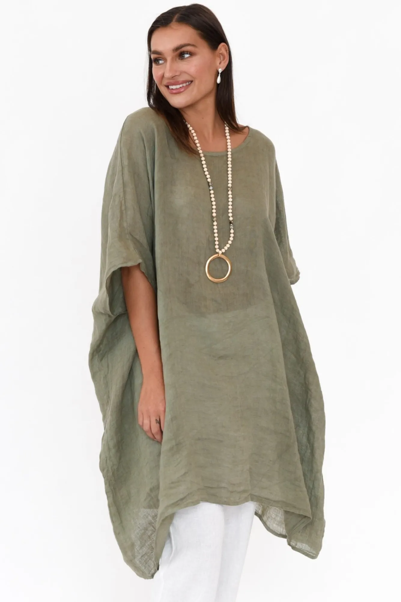 Linen Tops<Donna Donna Noemi Khaki Linen Kaftan Tunic