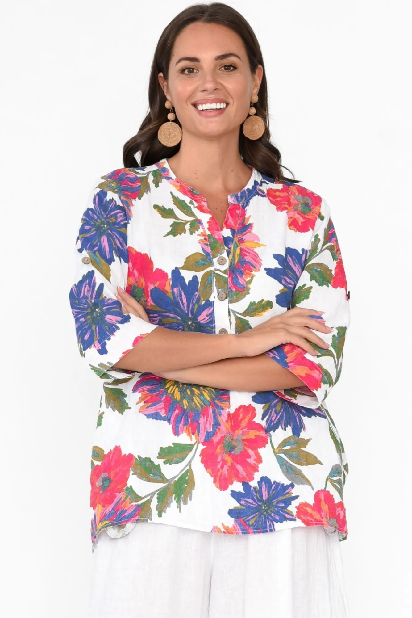 Linen Tops<Donna Donna Thora Red Blossom Linen Top