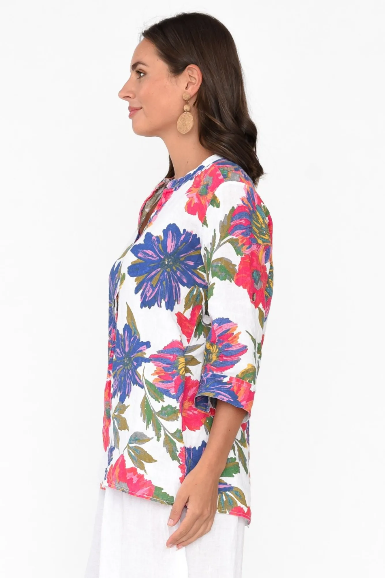 Fit: True To Size. Refer To Size & Fit Tab Below For Specific Size RecommendationNNfabric: 100% LinenNcrafted In Italy From Lightweight, Breathable And Non-Stretch Linen Designed With A Signature Woven Hand Feel NNround Banded Neckline Leads To A V-Split NNbutton-Down Detail To The Waist Nstraight 3/4 Length Sleeves Can Be Cuffed And Secured With A Button Tab NNbreezy Straight Silhouette NNdiscreet Pockets At The HipNstraight Hemline Falls To The Hip NNNcare: Cool Gentle Machine Wash RecommendedNNcolour: Lush Red And Blush Floral Illustrations Over A White Base