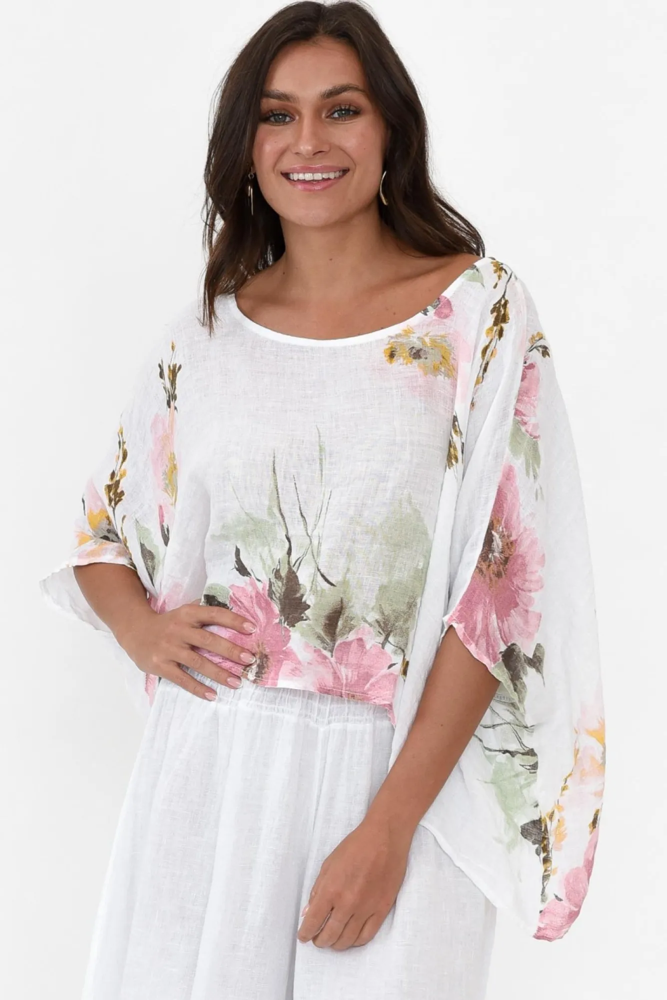 Linen Tops<Donna Donna Turner White Floral Linen Scoop Neck Top