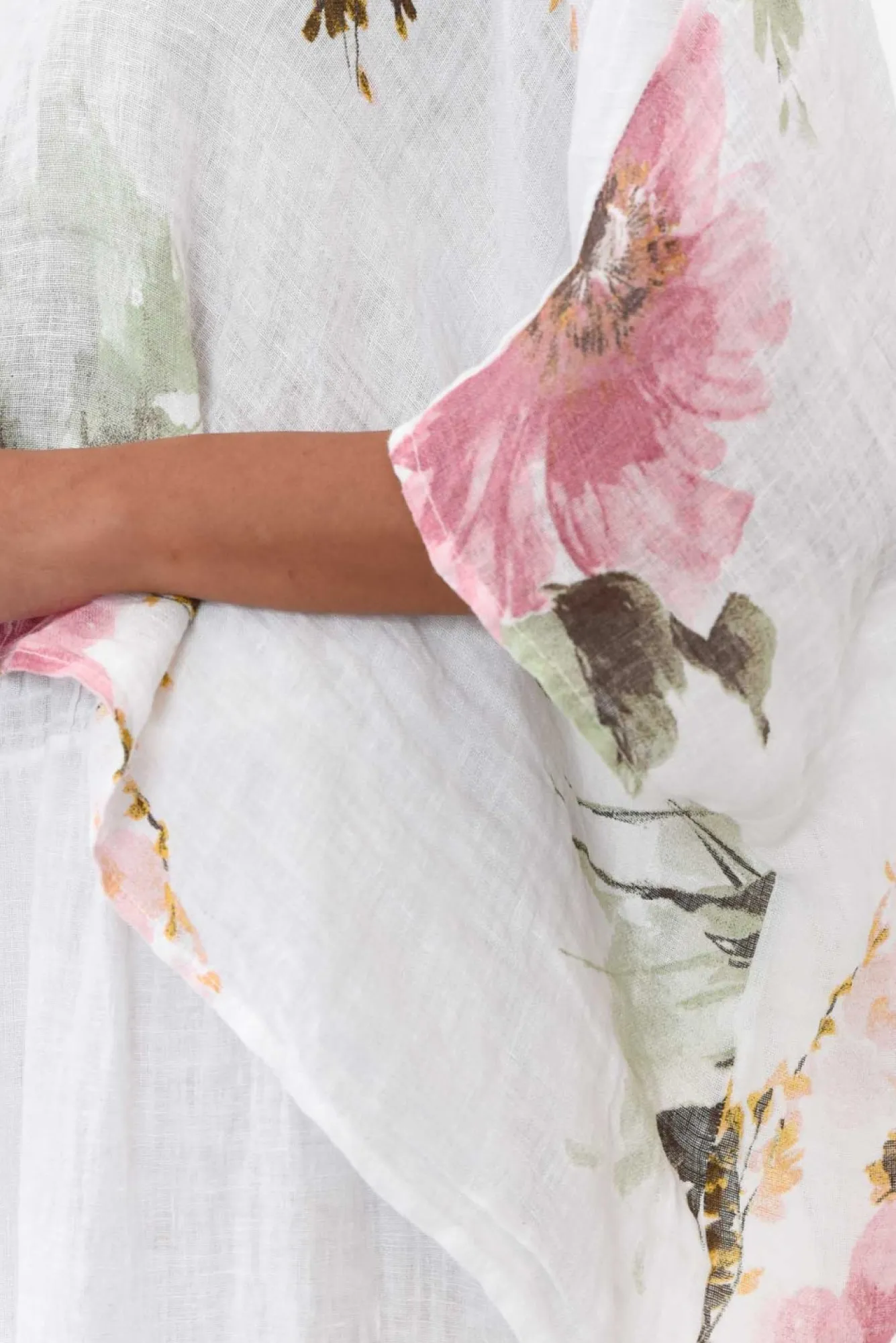 Fit: True To Size – Oversized Fit. Refer To Size & Fit Tab Below For Specific Size Recommendation NNfabric: 100% LinenNluxurious Ultra-Lightweight And Non-Stretch Linen Offering Wonderful Breathability Nmade In Italy Nsheer Style, We Recommend Pairing With A Nude CamisoleNNfeature Scoop Neckline Complements The Draping Half-Length SleevesNrelaxed Drape SilhouetteNNasymmetric Hemline Falls Above Hip Length – Perfect For Pairing With High-Waist Pants! NNcare: Cool Gentle Machine Wash RecommendedNNcolour: Fresh White Base With Delicate Pink Floral Illustrations