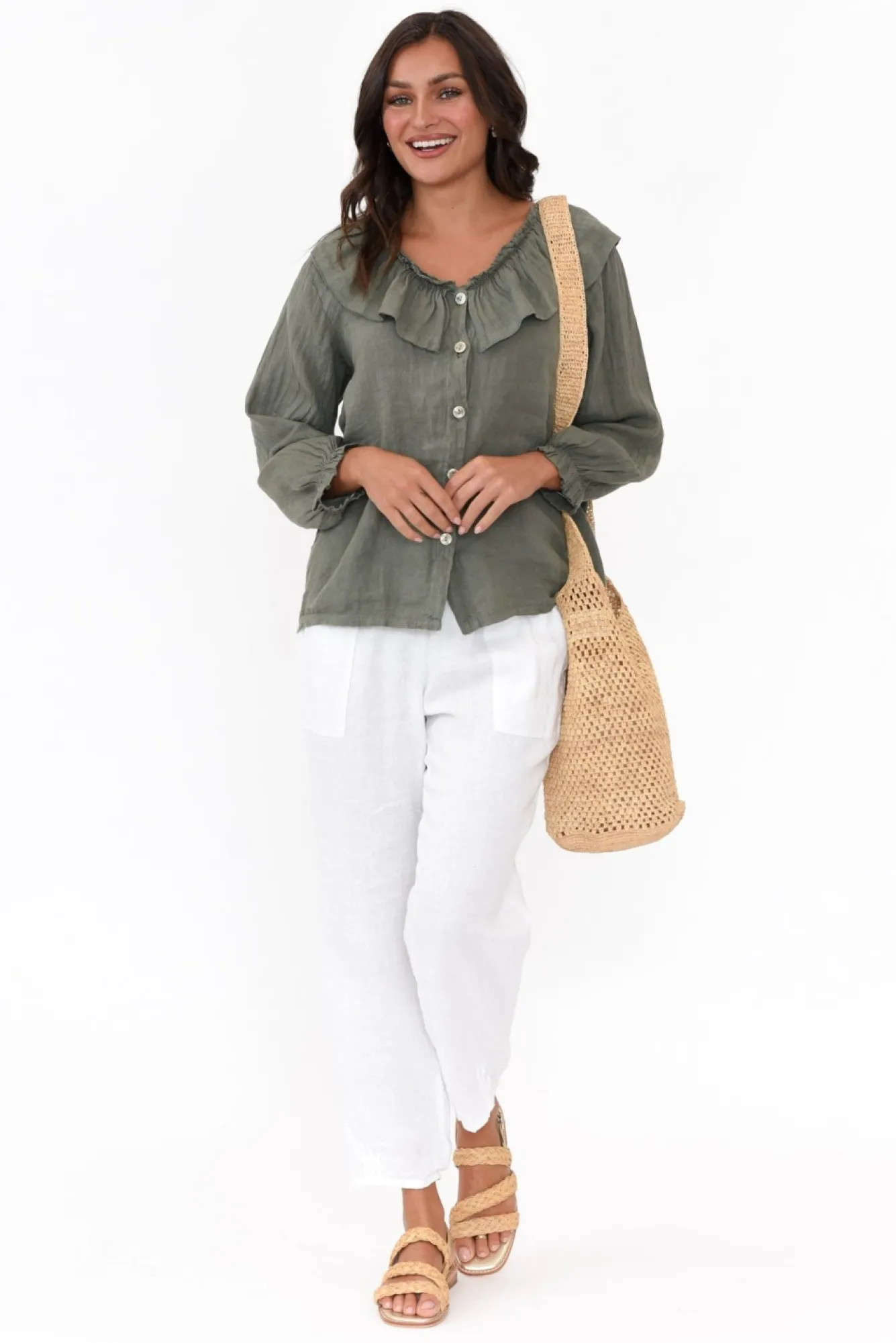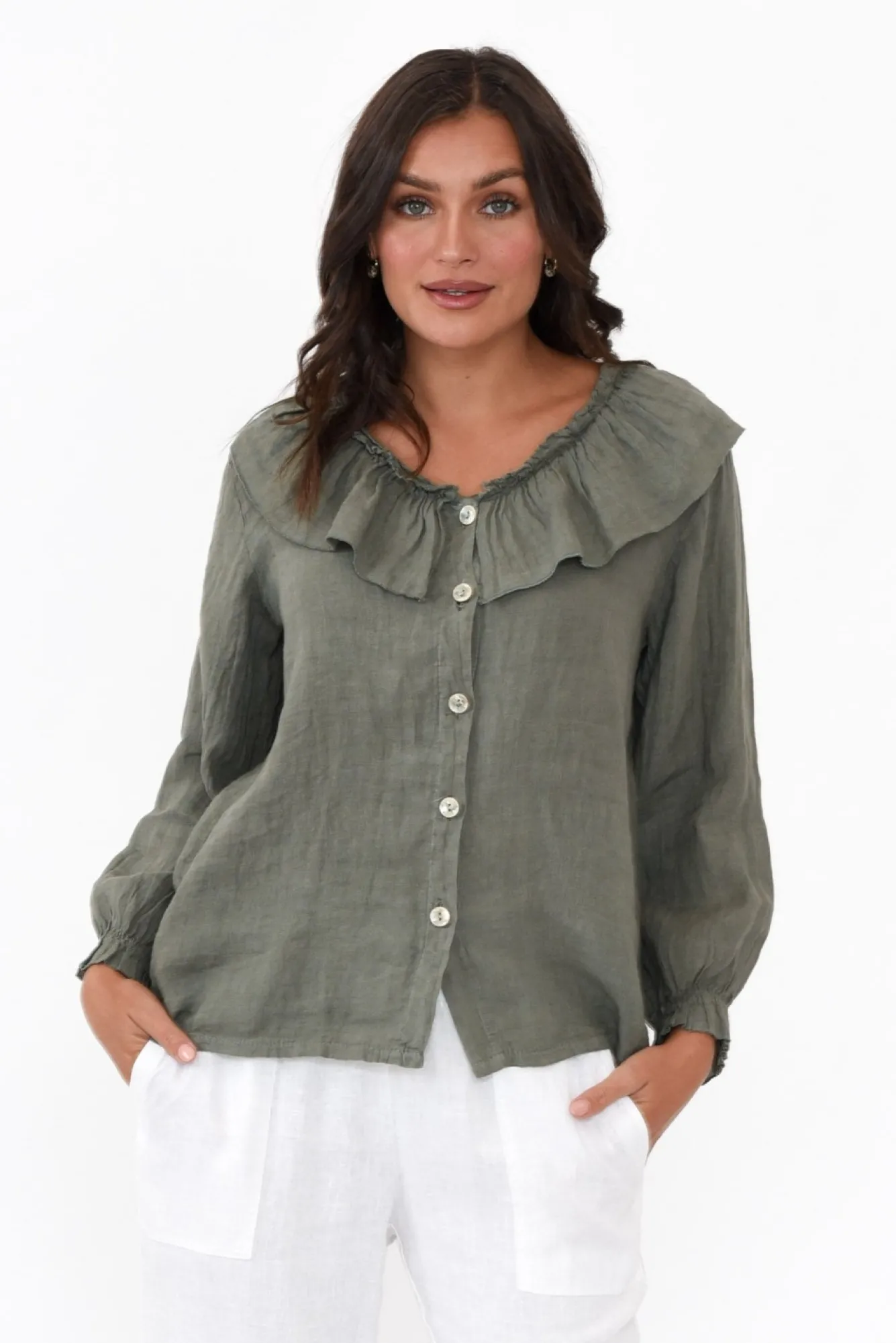 Be the first to review “Linen Tops<Fabuler Sullivan Khaki Linen Frill Top” Cancel reply