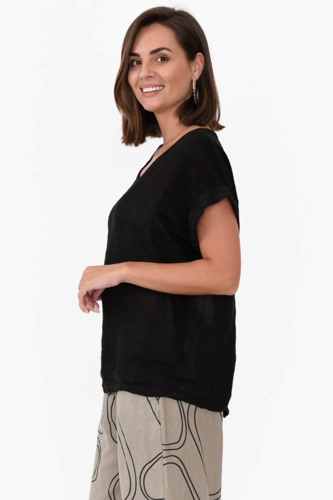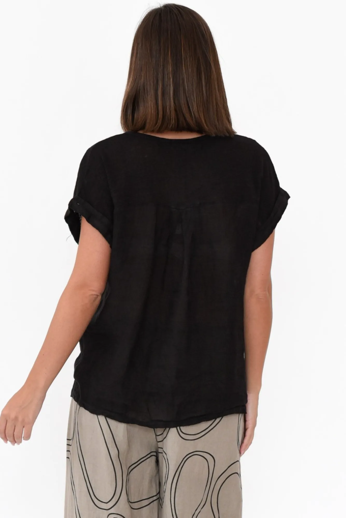 Linen Tops<Talia Benson Anna Black Linen Tee