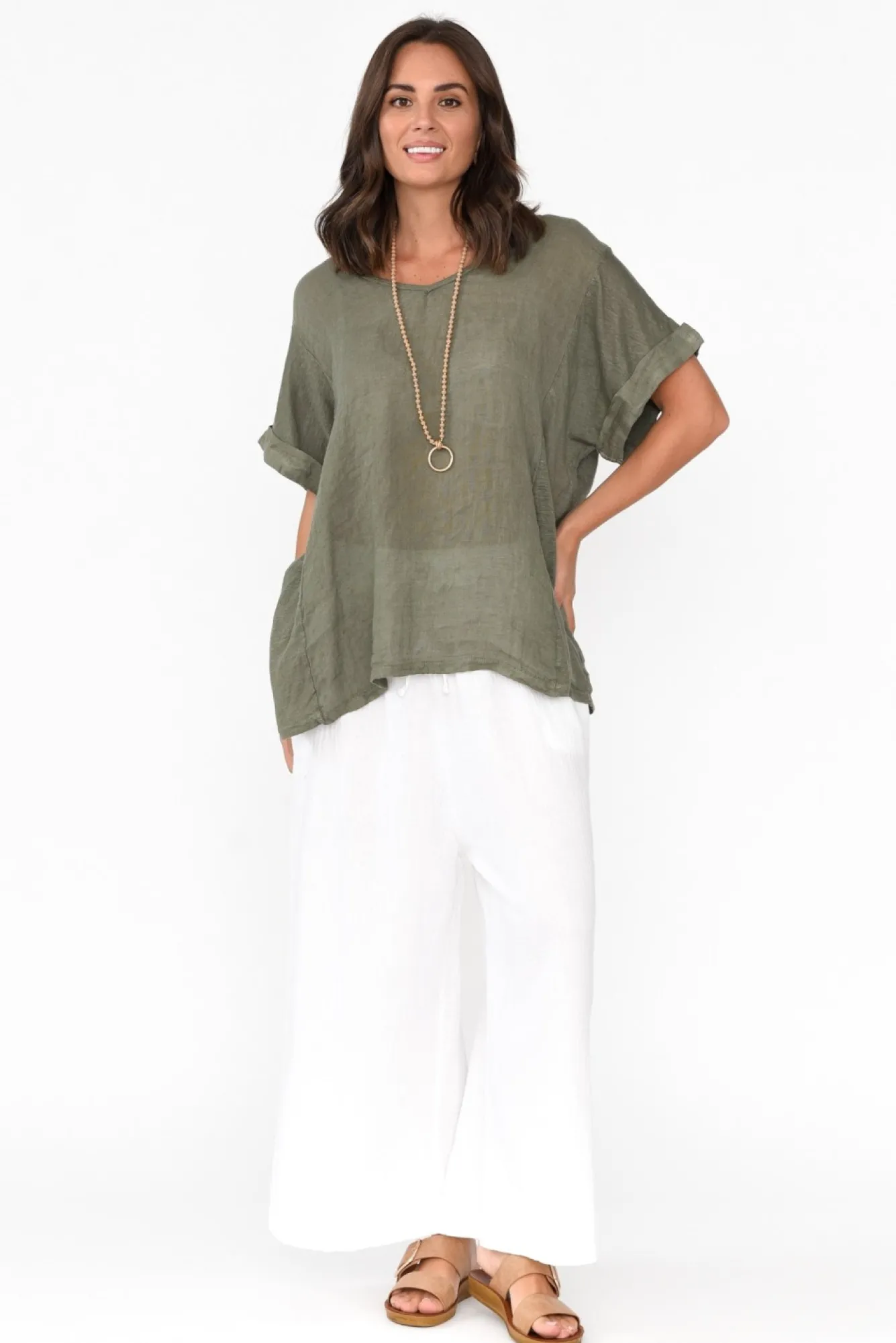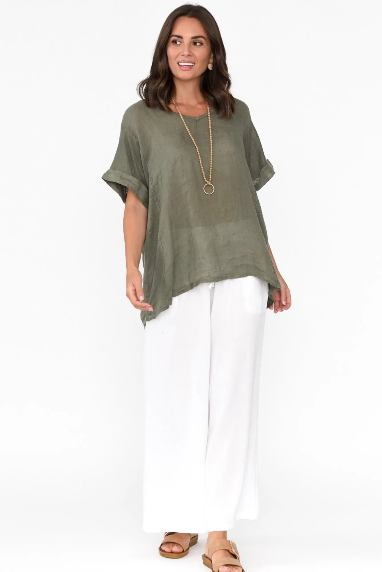 Be the first to review “Linen Tops<Talia Benson Oversized Anna Khaki Linen Tee” Cancel reply