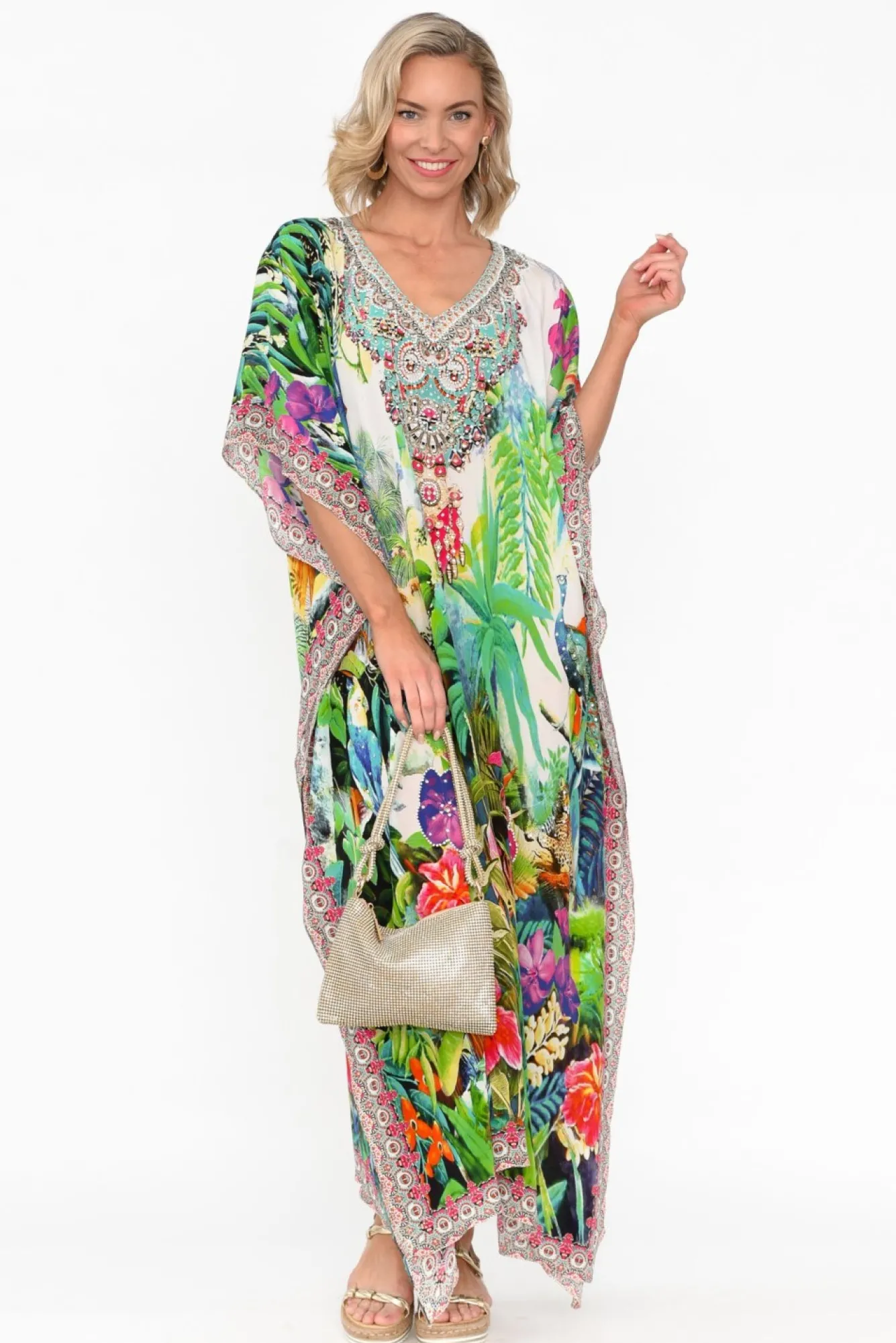 Maxi Dresses<Fashion Spectrum Tropical Resort Silk Maxi Kaftan