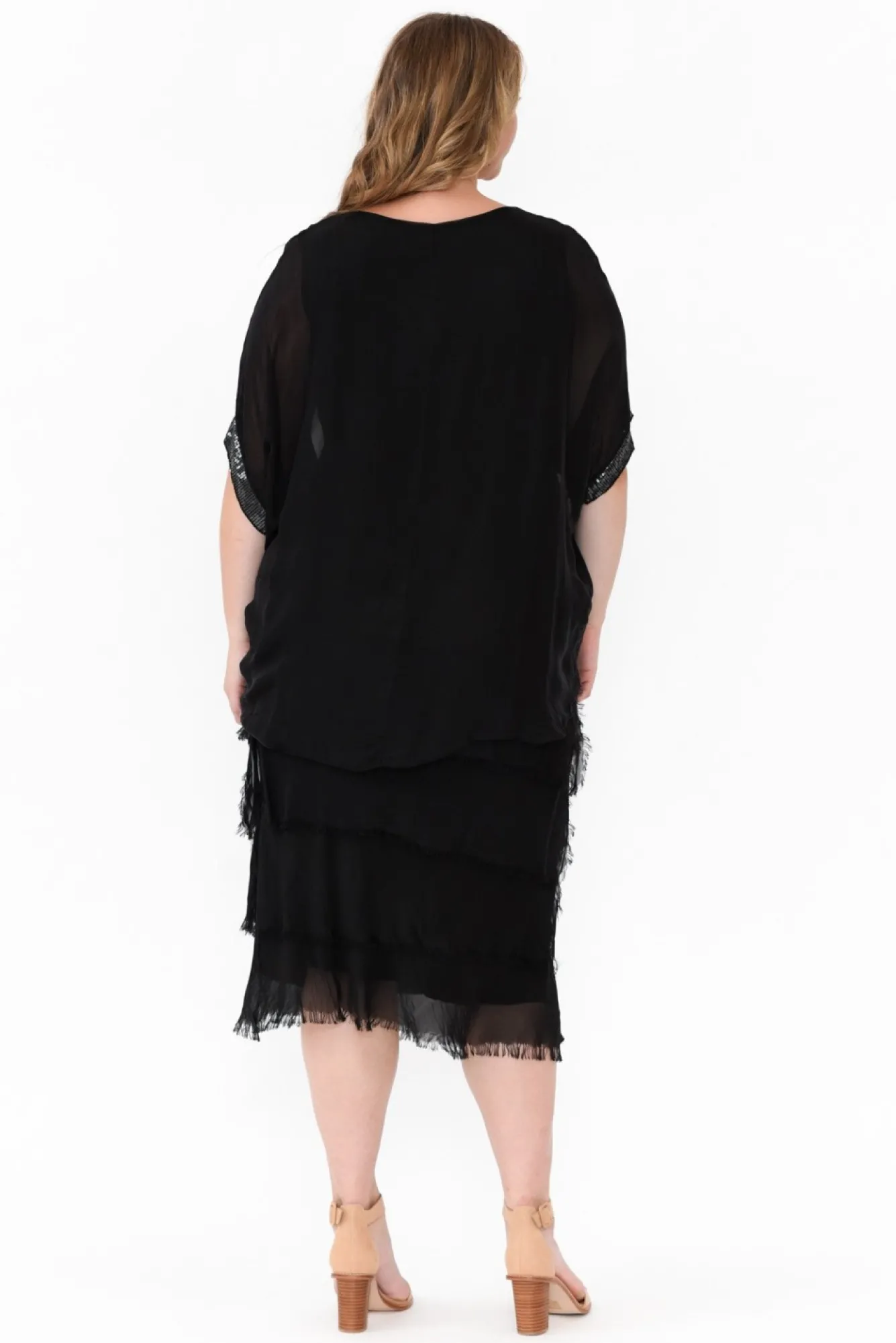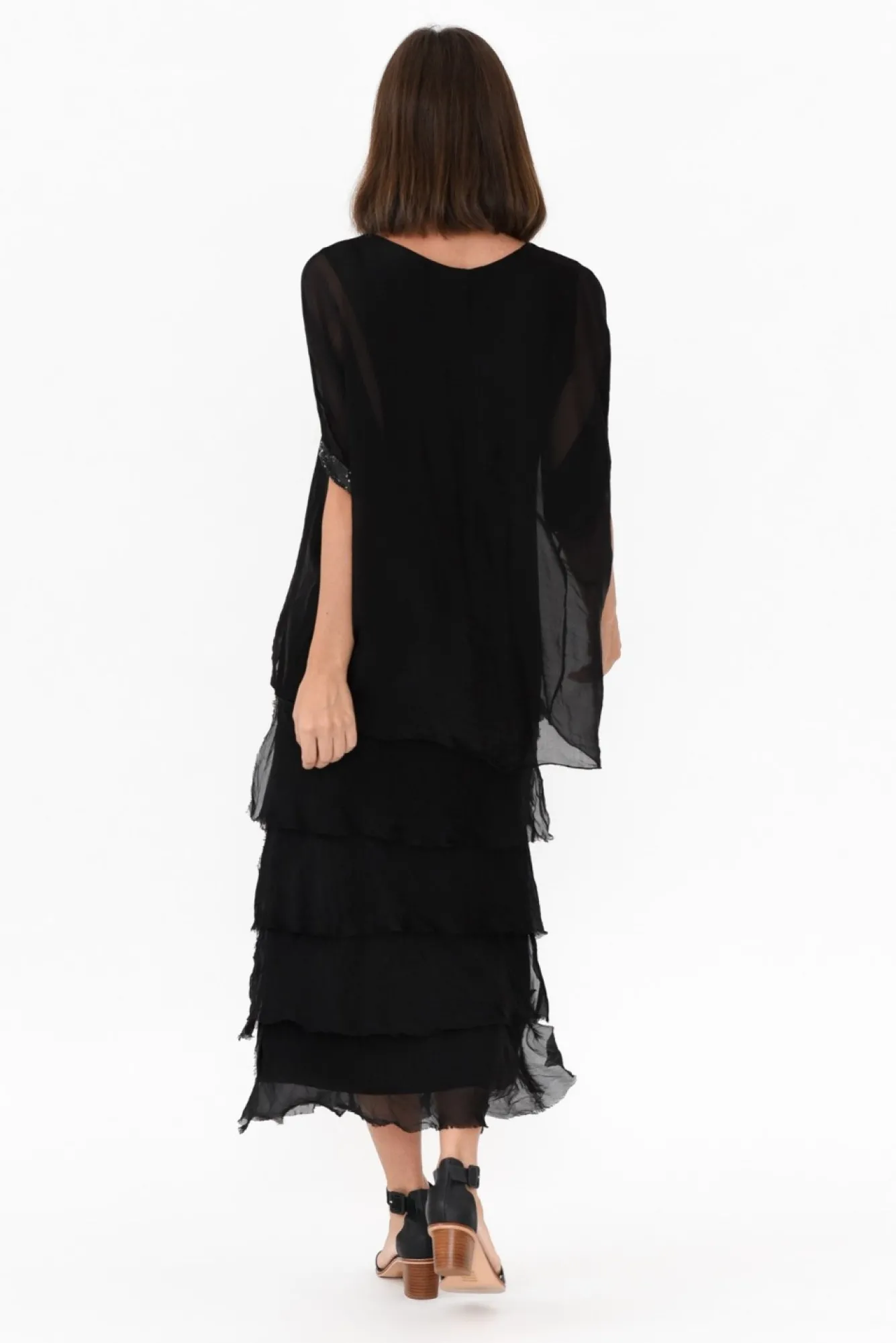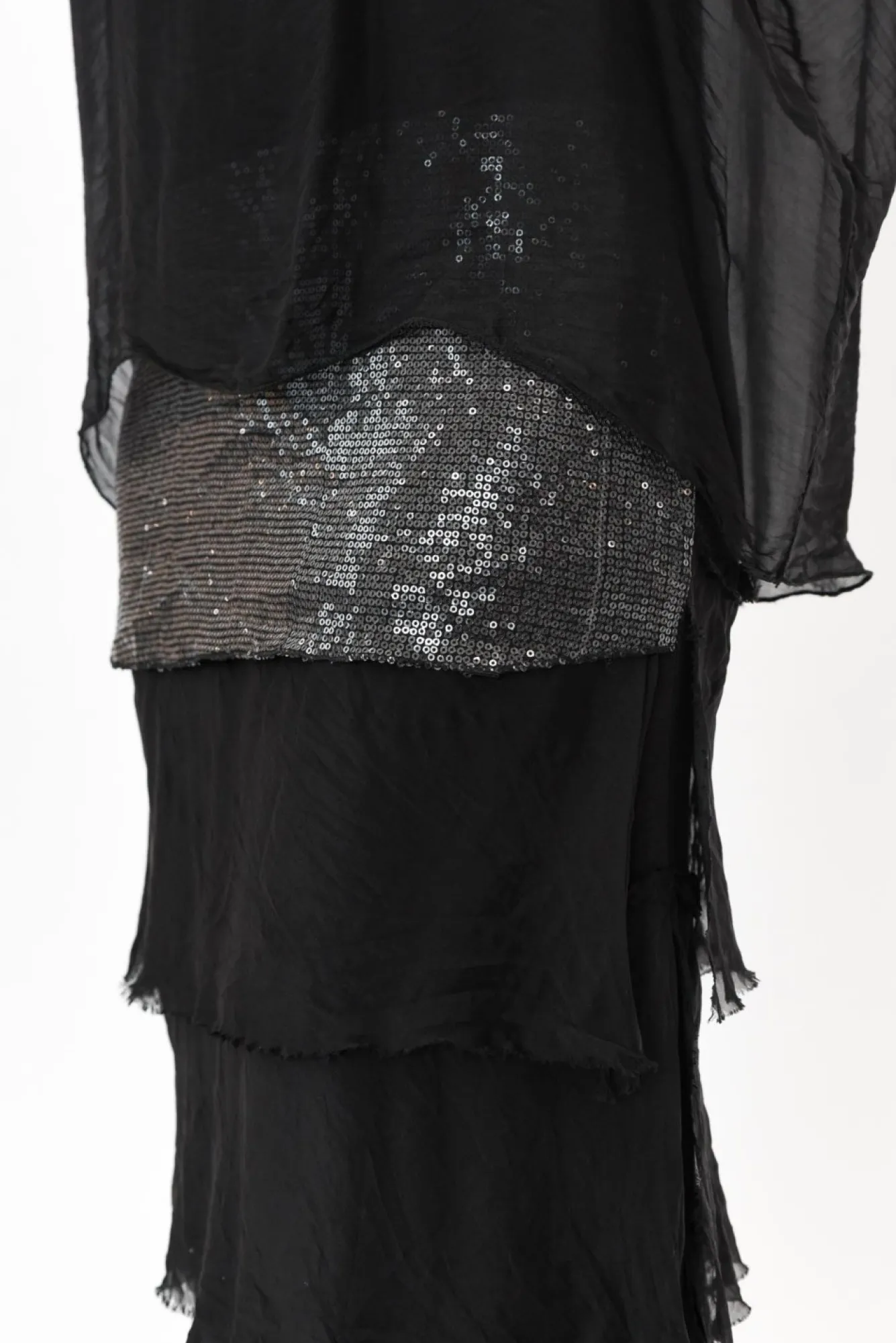 Fit: True. Refer To Size & Fit Tab Below For Specific Size RecommendationNNfabric: Outer: 70% Viscose 30% Silk Lining: 95% Viscose 5% ElastaneNhandcrafted In Italy From Lightweight, Ultra-Smooth Fabric Featuring A Comfortable Stretchy Lining NNsimple Round Neckline Compliments Half-Length Batwing Sleeves NNstraight Silhouette Enhanced By Layered SkirtNsequin Tier And Cuff Trim For An Eye-Catching Twist Nfeaturing A Smooth And Stretchy Inner Lining For Coverage And ComfortNraw Hem Falls To Elegant Maxi LengthNNcare: Cool Gentle Hand Wash RecommendedNNcolour: Striking Midnight Black Shade
