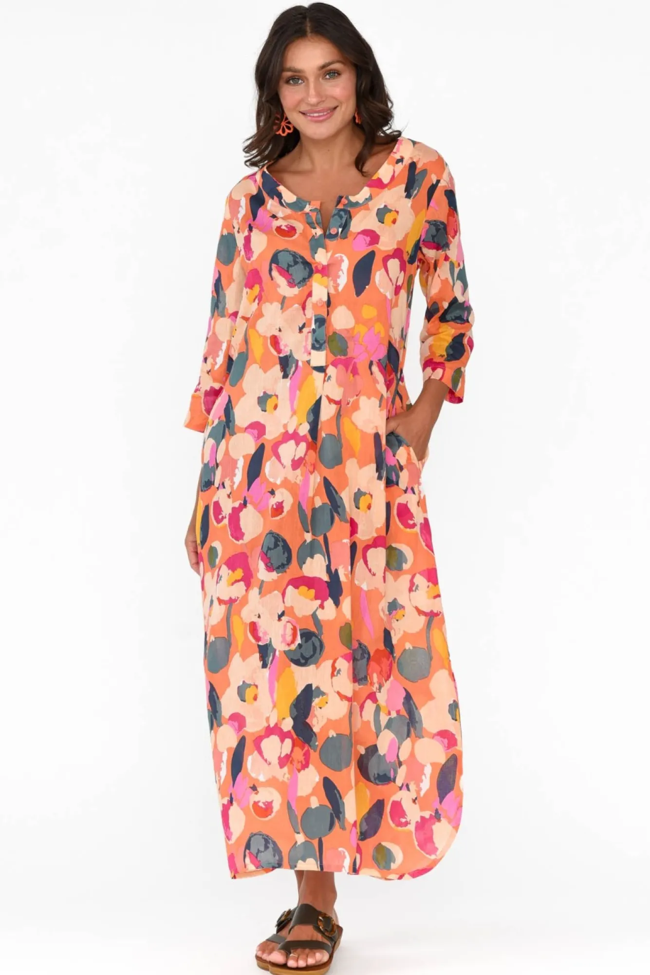 Fit: True To Size. Refer To Size & Fit Tab Below For Specific Size RecommendationNNfabric: 100% CottonNa Colourful And Chic Maxi Dress Crafted From Ultra-Lightweight, Breathable And Non-Stretch Cotton With A Lovey Soft Hand FeelNsoft V-Neckline With Buttons Cascading Down BustNrelaxed A-Line Silhouette NNfeaturing 36Cm Side SplitsNtwo Internal Hip Pockets NNstraight Hemline Falls To Maxi Length NNNcare: Cool Gentle Hand Wash RecommendedNNcolour: Apricot Base With A Floral Print OverlayNNstyle Tip: Fabric Is Slightly Sheer – We Recommend Pairing With A Slip For Additional Coverage