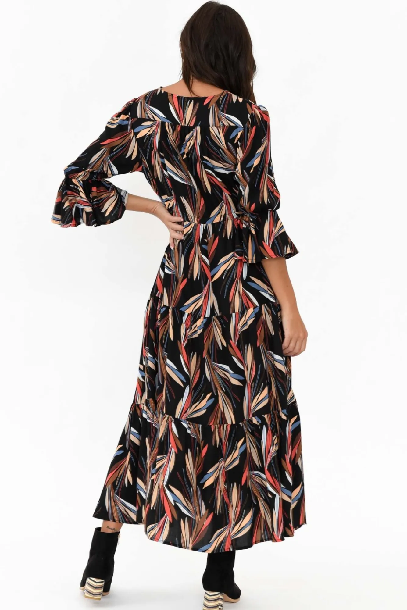Maxi Dresses<Willow Tree Howard Black Leaf Tassel Tie Dress