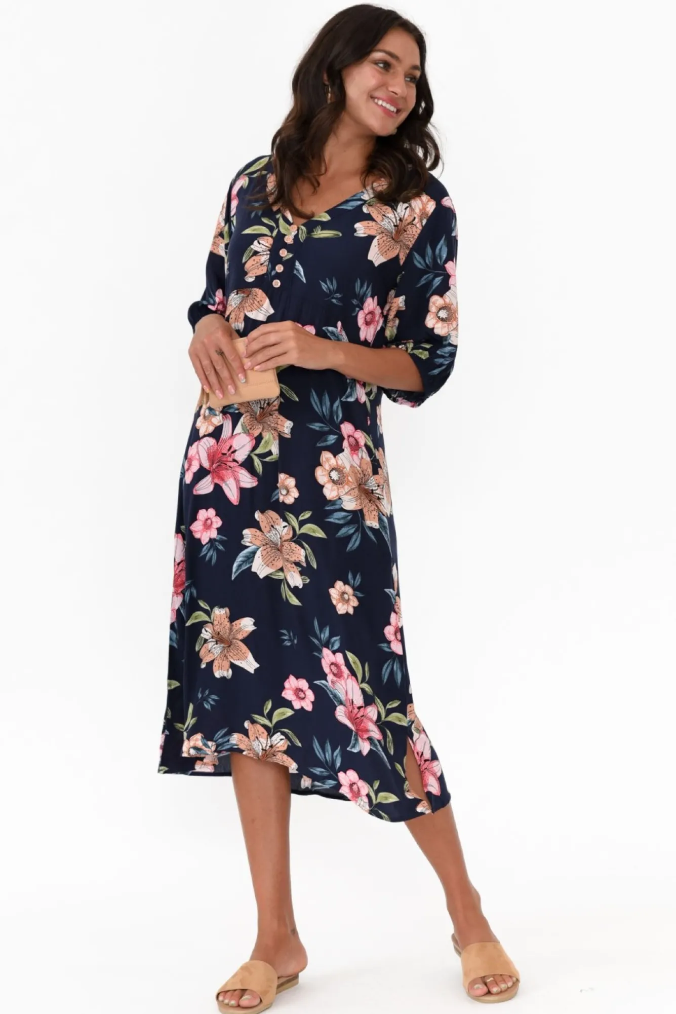 Be the first to review “Midi Dresses<Cafe Latte Farah Navy Blossom Button Dress” Cancel reply