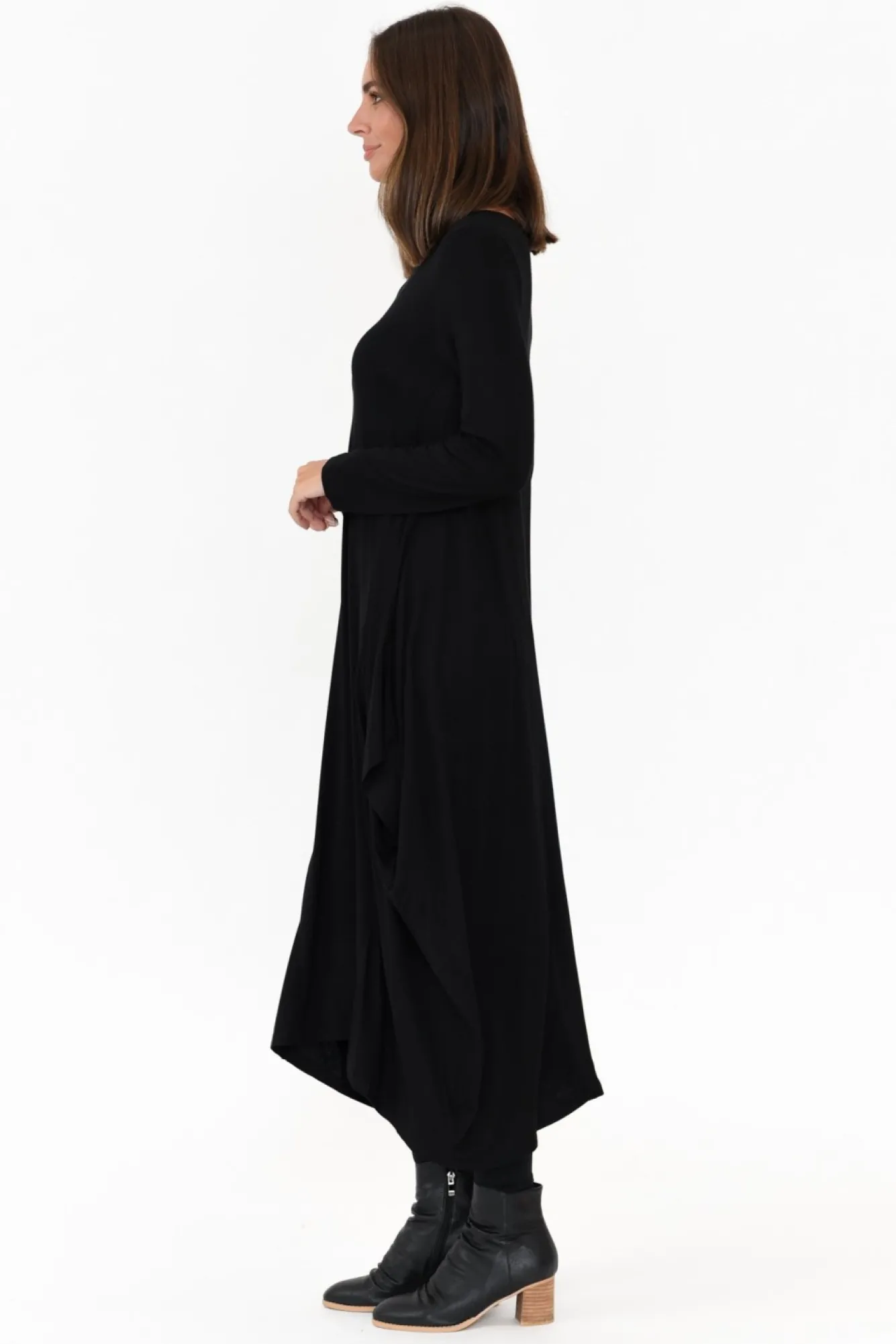 Midi Dresses<Cali and Co Kendal Black Long Sleeve Dress