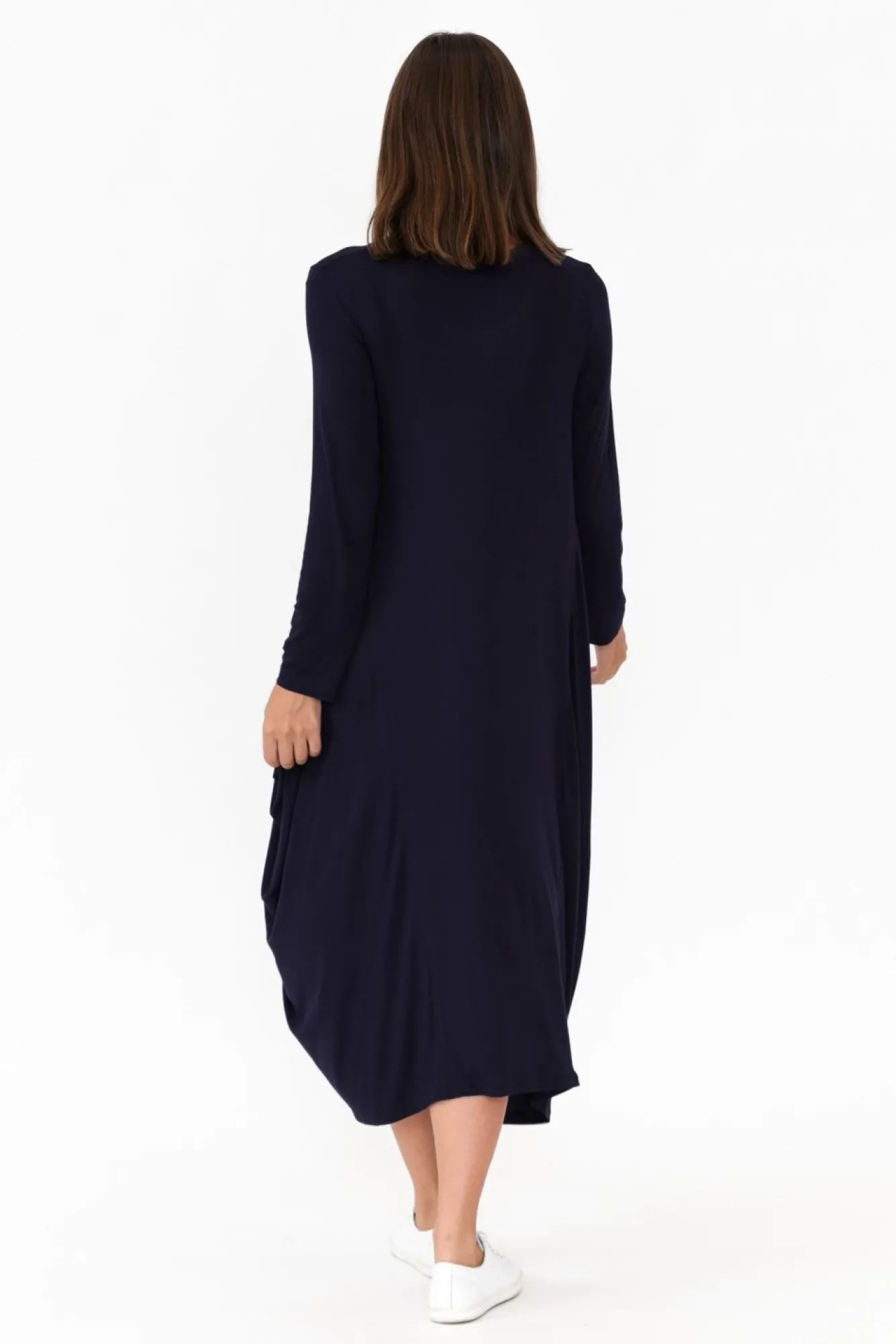 Midi Dresses<Cali and Co Kendal Navy Long Sleeve Dress