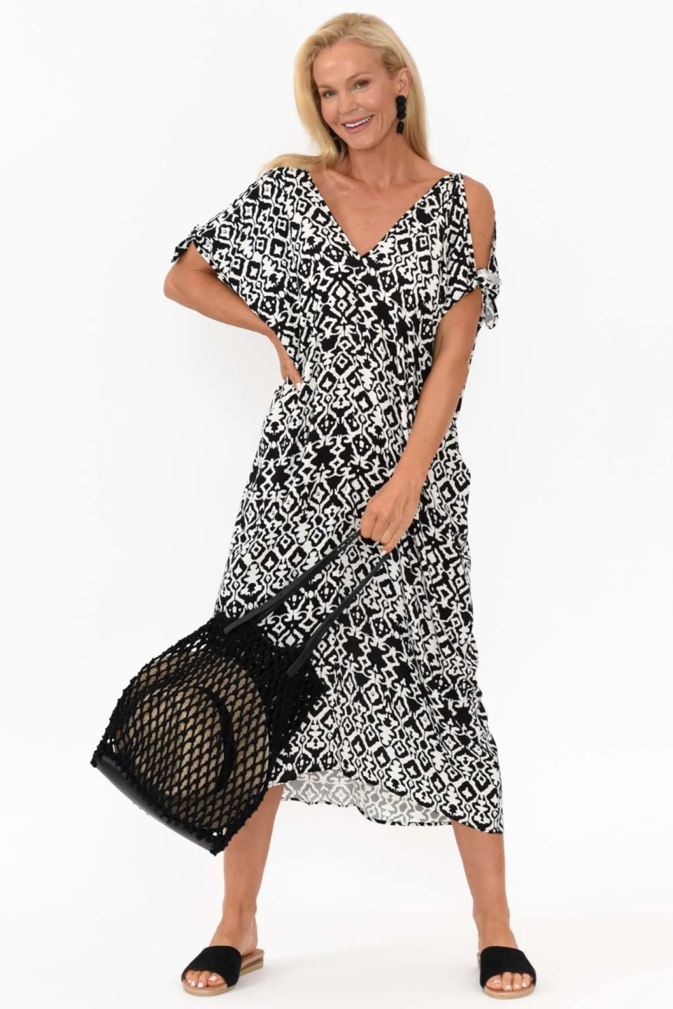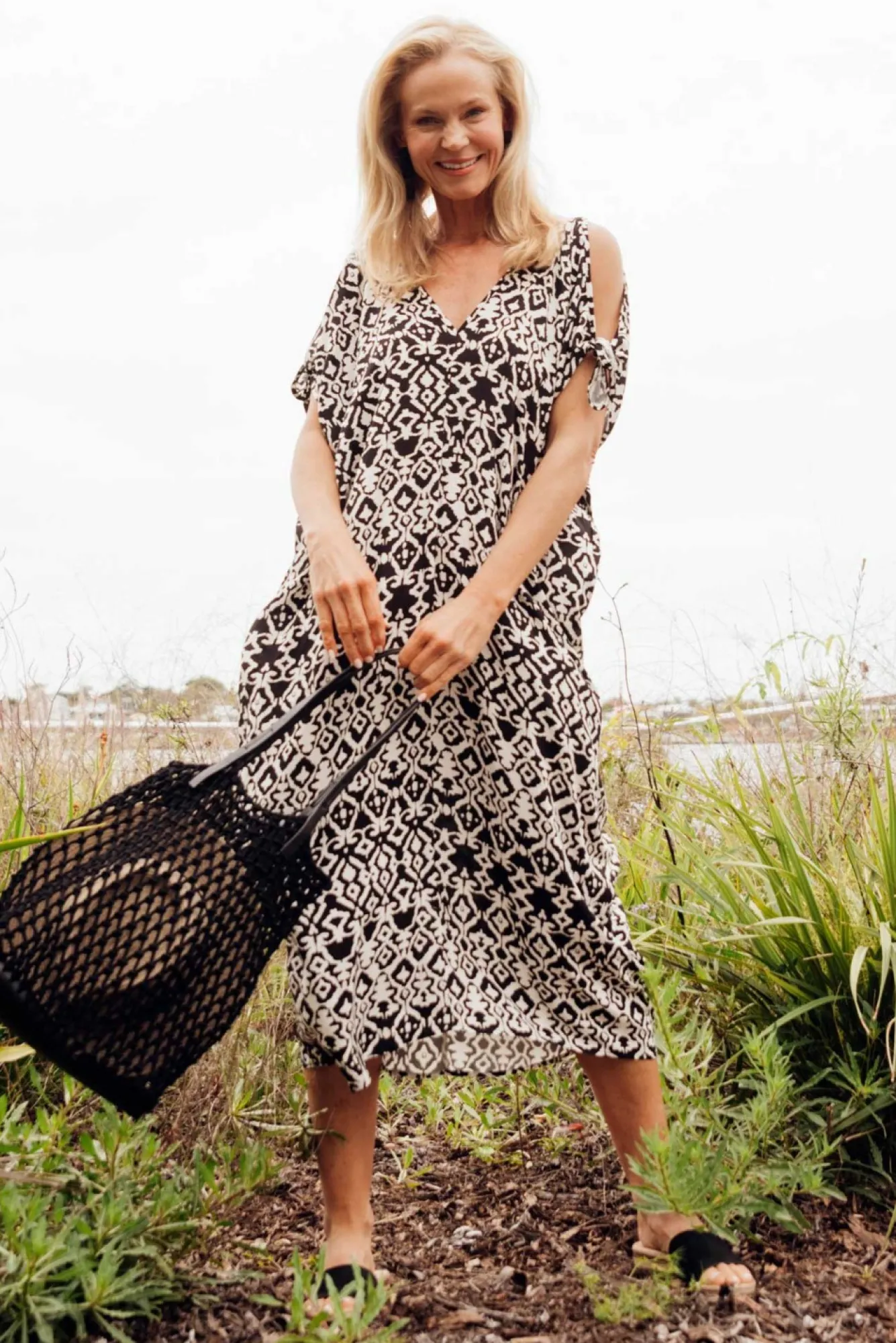 Midi Dresses<Slate the Label Miranda Black Geo Cold Shoulder Kaftan