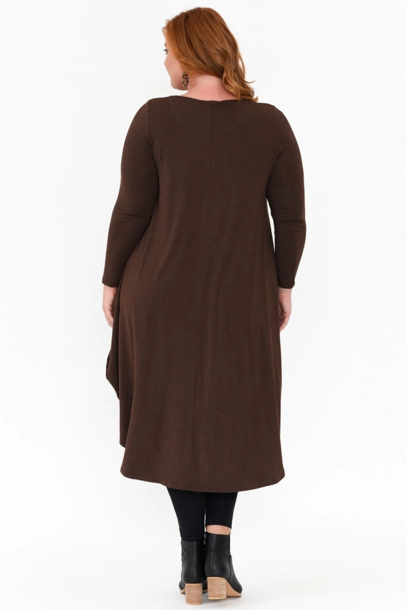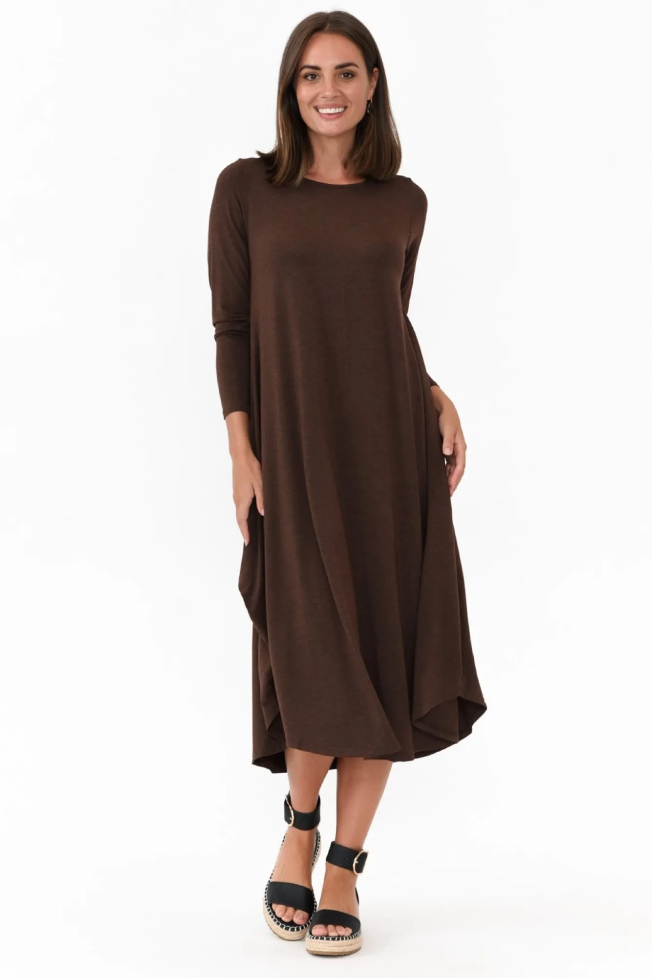 Fit: True. Refer To Size & Fit Tab Below For Specific Size RecommendationNNfabric: 96% Micromodal®Air, 4% LycraNultra-Comfortable Micro Modal Fabric With A Soft And Stretchy Hand Feel, Offering Comfortable Thermoregulating Properties Nmade From Sustainably Sourced Beechwood FibresNsimple Rounded Neckline Nfull-Length Fitted Sleeves NNswing Style Silhouette Enhanced By Fitted Torso And Voluminous SkirtNdraping Curved Hemline Drapes To Midi Length NNcare: Warm Gentle Machine Wash RecommendedNNcolour: Warm Chocolate Shade With Soft Marle Effect