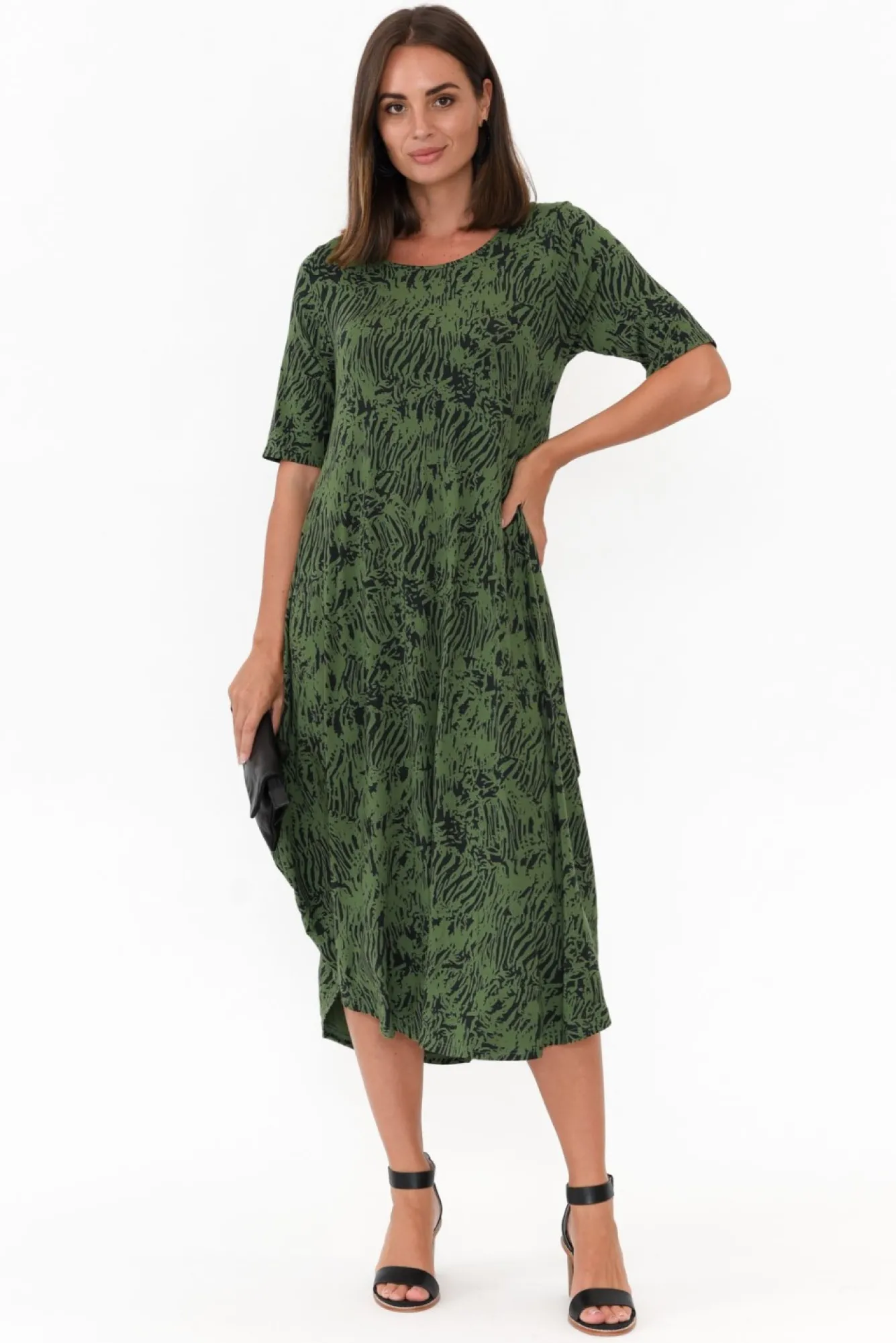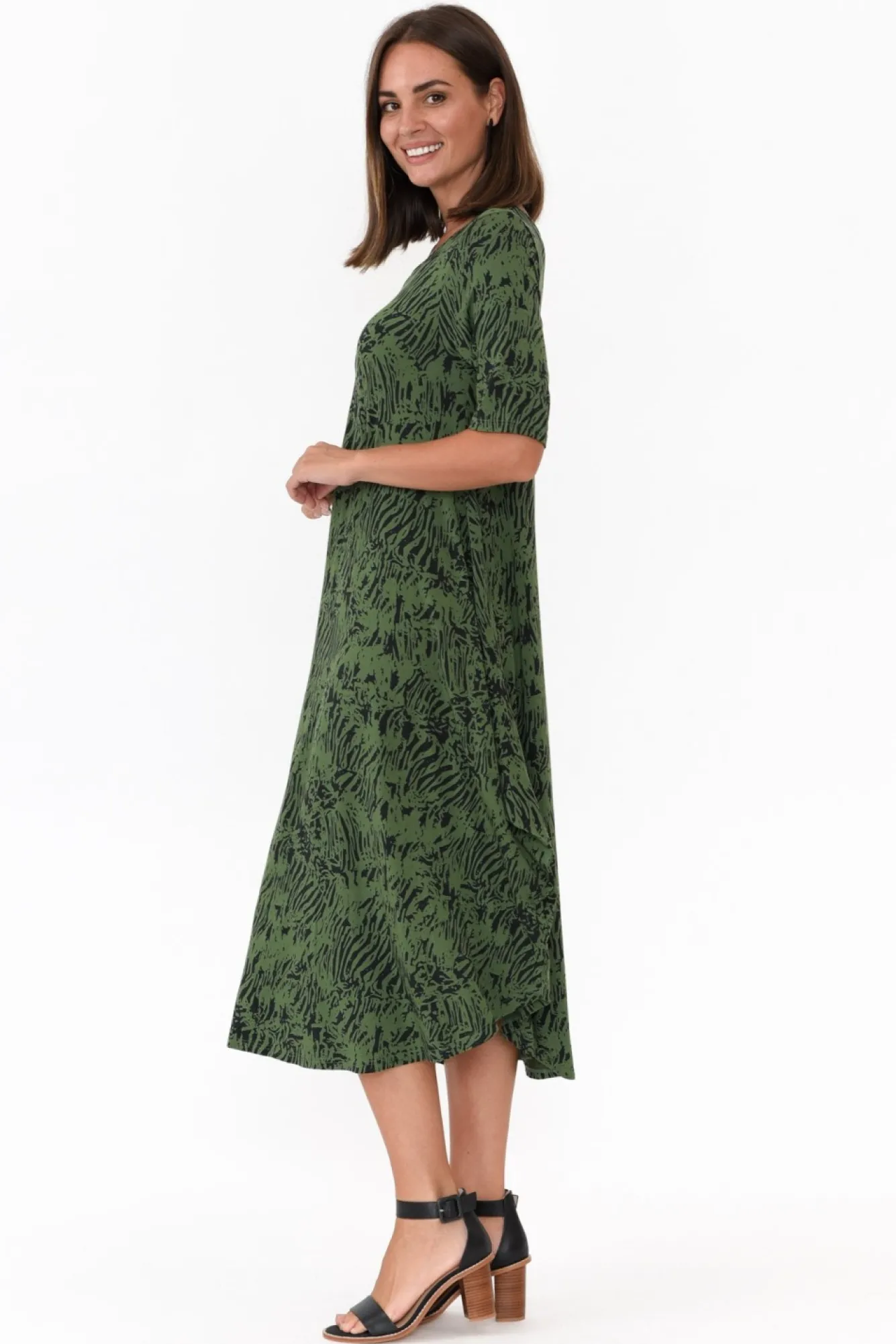 Be the first to review “Midi Dresses<Tani Green Tiger Micro Modal Tri Drape Dress” Cancel reply