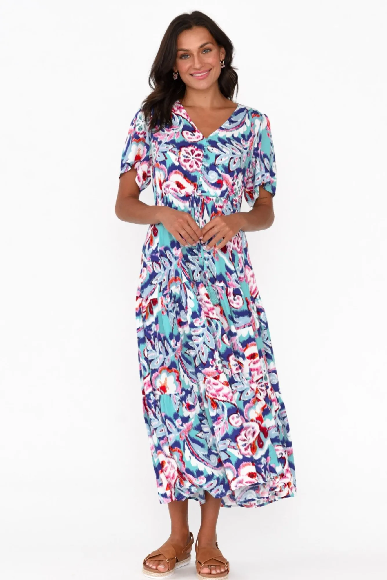 Midi Dresses<Willow Tree Solene Blue Garden Tier Dress