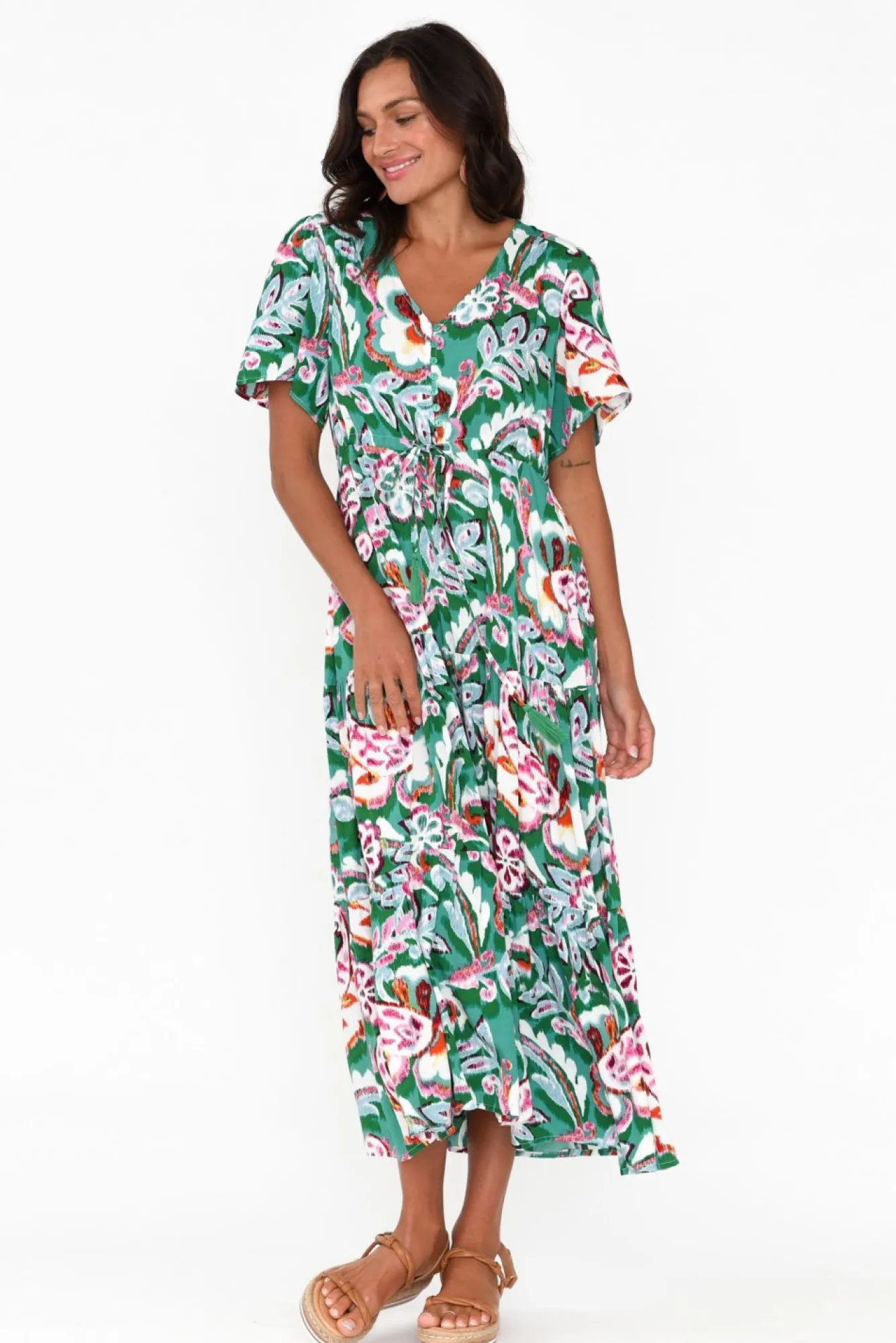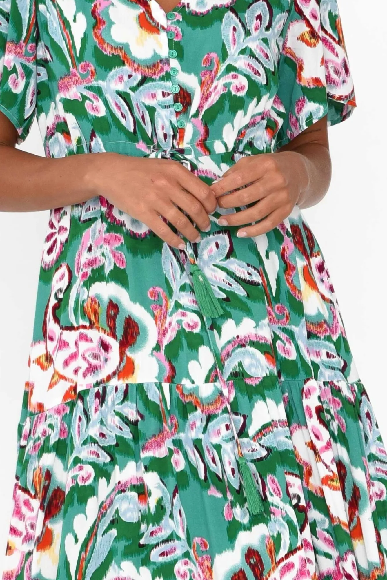 Midi Dresses<Willow Tree Solene Green Garden Tier Dress