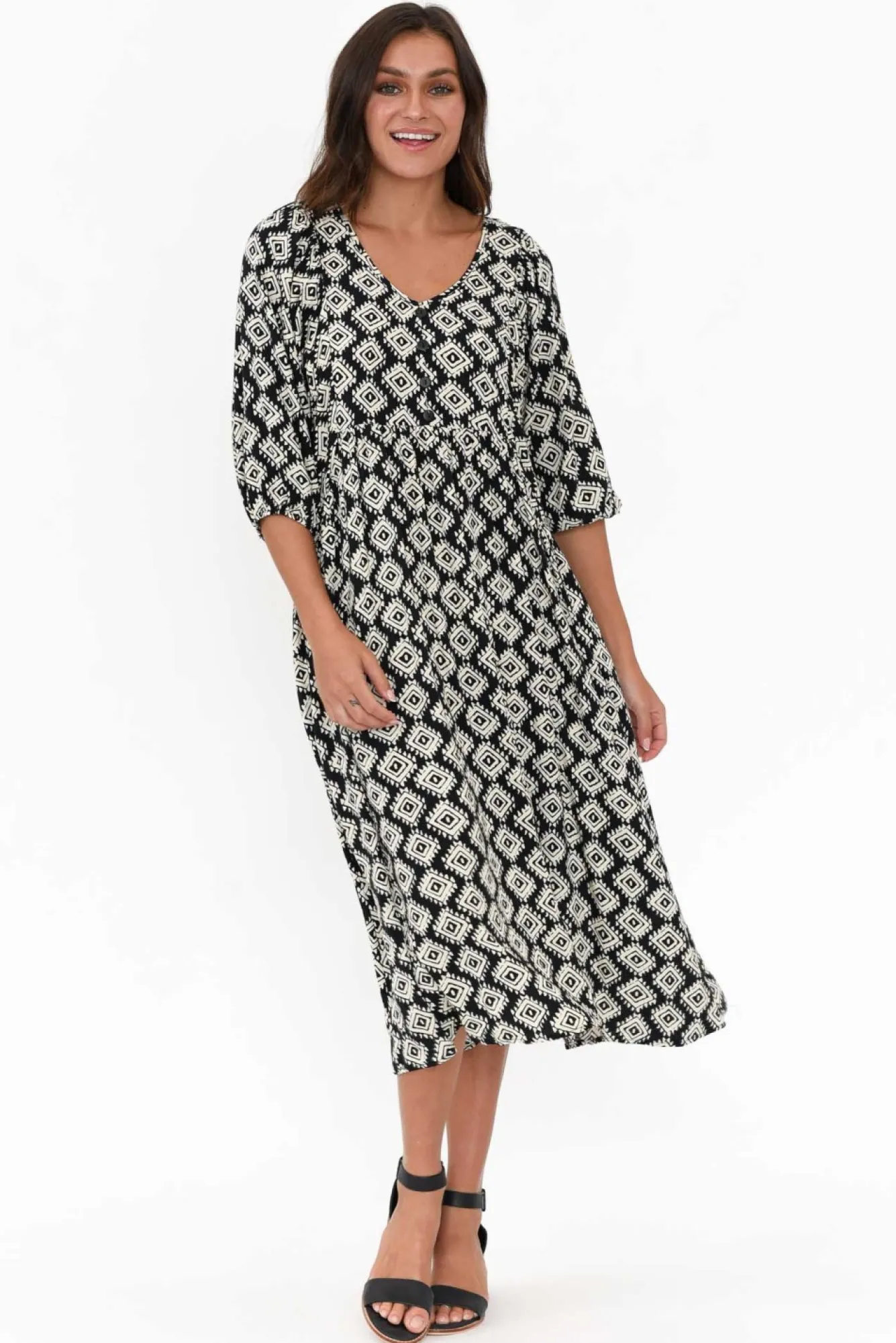 Be the first to review “Midi Dresses<Willow Tree Trey Black Geo Midi Dress” Cancel reply