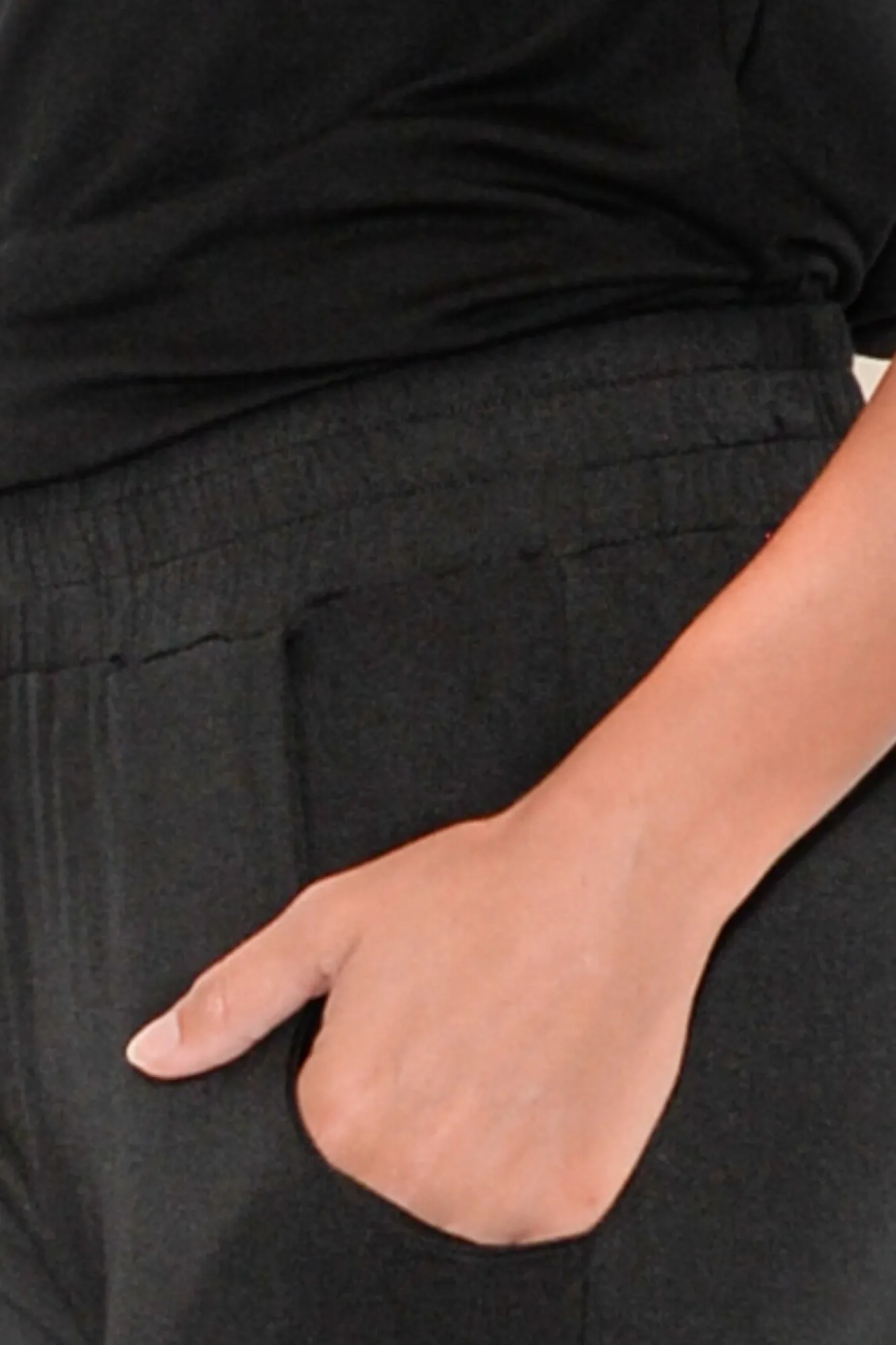 Fit: True. Refer To Size & Fit Tab Below For Specific Size RecommendationNNfabric: 93% Bamboo Viscose 7% SpandexNultra Soft And Stretchy Lightweight Bamboo DesignNNthick And Ultra-Stretchy WaistbandNtwo Side Hip PocketsNblack Bamboo Is Upf50 Making This Style Perfect For Sunny DaysNstraight Leg, Relaxed FitNankle-Skimming LengthNNcare: Cool Gentle Hand Wash RecommendedNNcolour: Versatile Black Tone