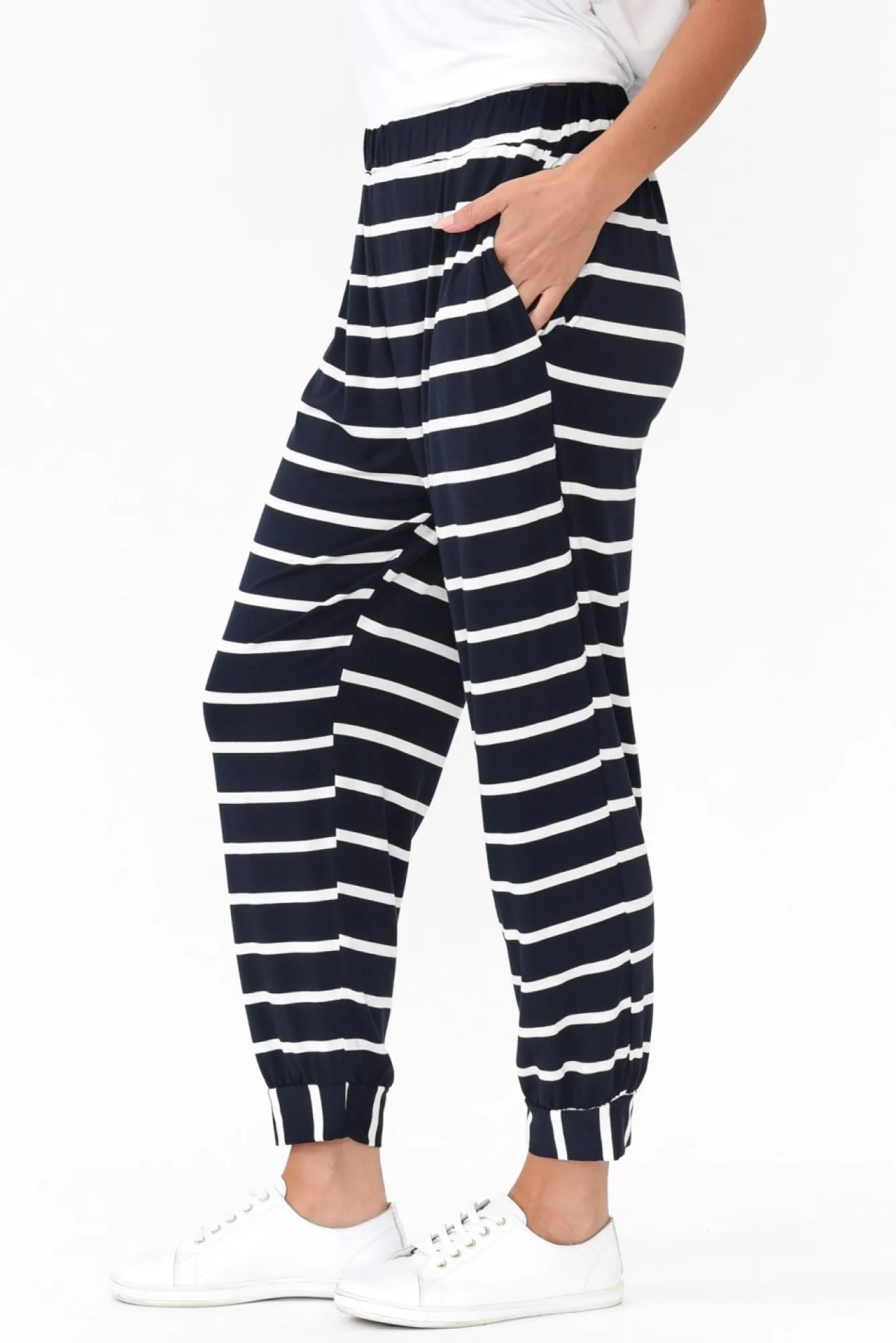 Fit: True To Size. Refer To Size & Fit Tab Below For Specific Size RecommendationNNfabric: 93% Bamboo, 7% SpandexNcrafted From Ultra-Soft And Stretchy Premium Midweight Bamboo Fabric With Moisture-Wicking, Hypo-Allergenic, And Thermoregulating Properties Nthick Elasticated Waistband For Support And Comfort NNrelaxed Jogger Silhouette With Tapering Towards The Hemline NNtwo Discreet Hip Pockets Located In Side Seams Ntapered Cuffs Fall To An Easy-Cropped Length NNNcare: Cool Gentle Hand Wash RecommendedNNcolour: Classic Navy And White Stripes