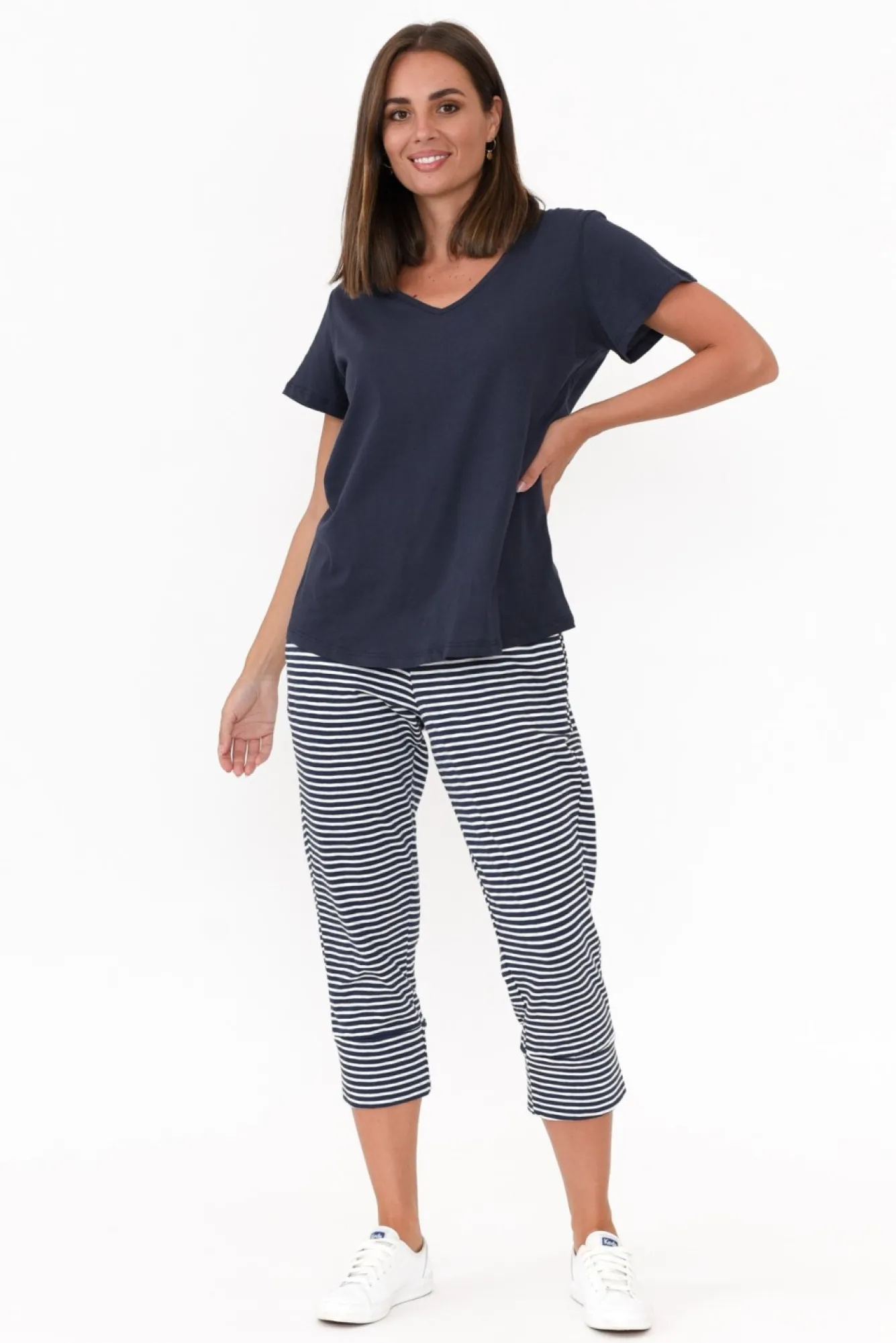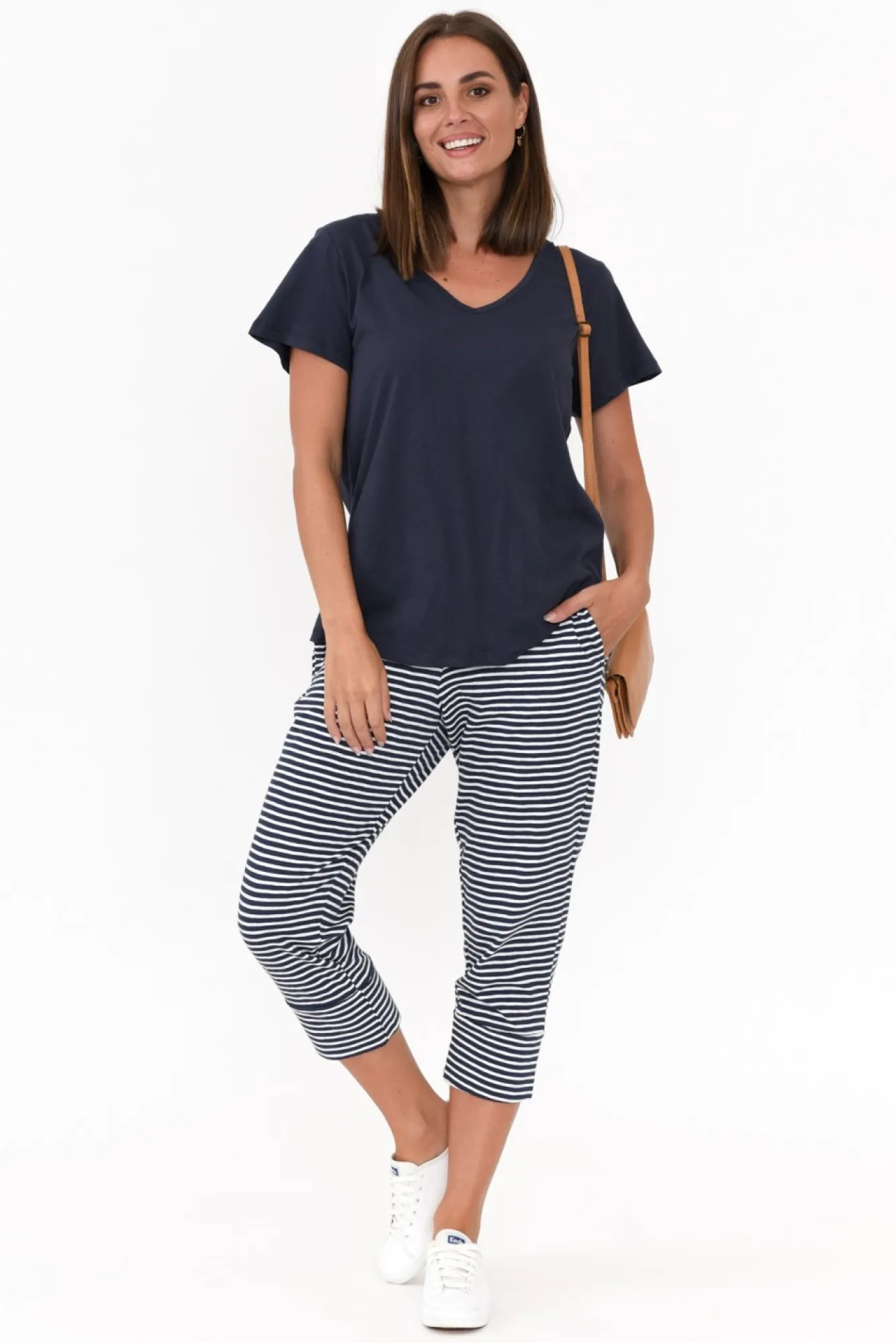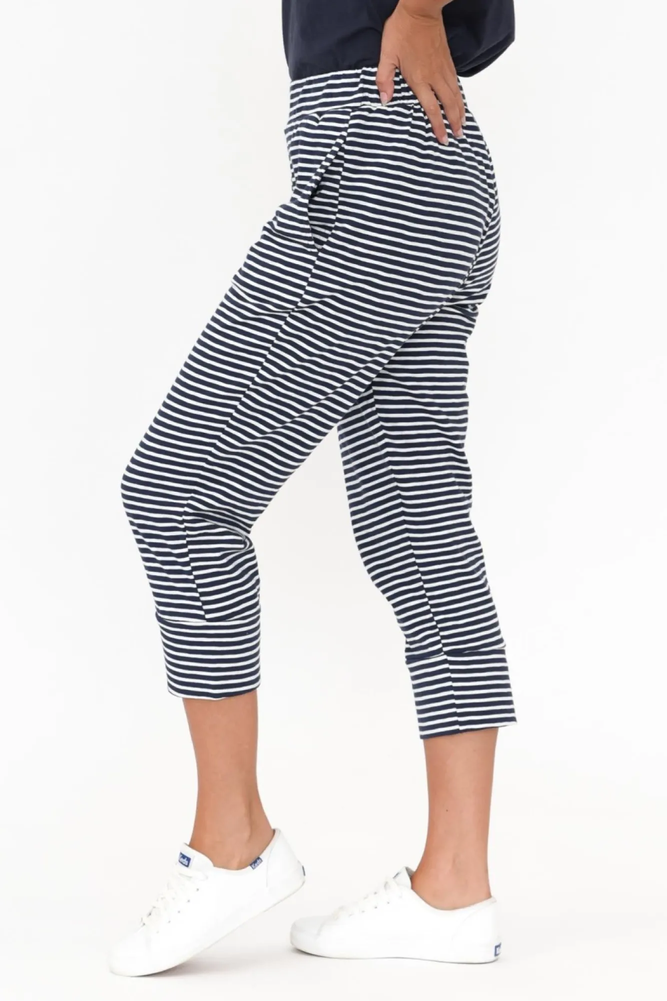 Pants<Betty Basics Alexia Navy Stripe Cotton Cropped Jogger Pant