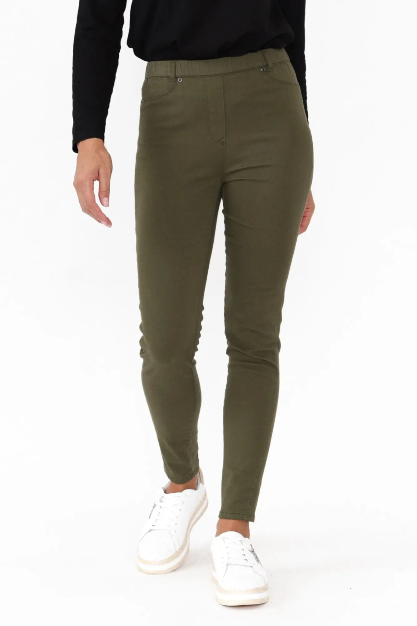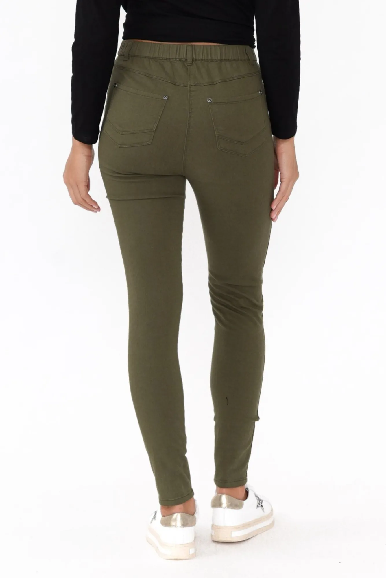 Fit: Oversized. Refer To Size & Fit Tab Below For Specific Size RecommendationNNfabric: 97% Cotton, 3% SpandexNultra-Stretchy, Midweight, And Breathable Cotton FabricNtrendy Jean Look With All The Comfort Of Your Favourite PantsNhigh Waisted With A Firm Elasticated WaistlineNfaux Fly Front And Two Faux Front PocketsNfunctional Belt LoopsNtwo Functional Back PocketsNfull-Length Slim LegNNcare: Cool, Gentle Hand Wash RecommendedNNcolour: Classic Deep Green Khaki Shade
