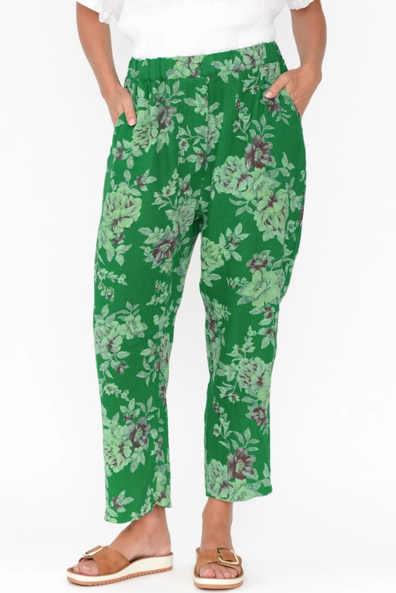 Pants<Cali and Co Jacqui Green Blossom Linen Pants