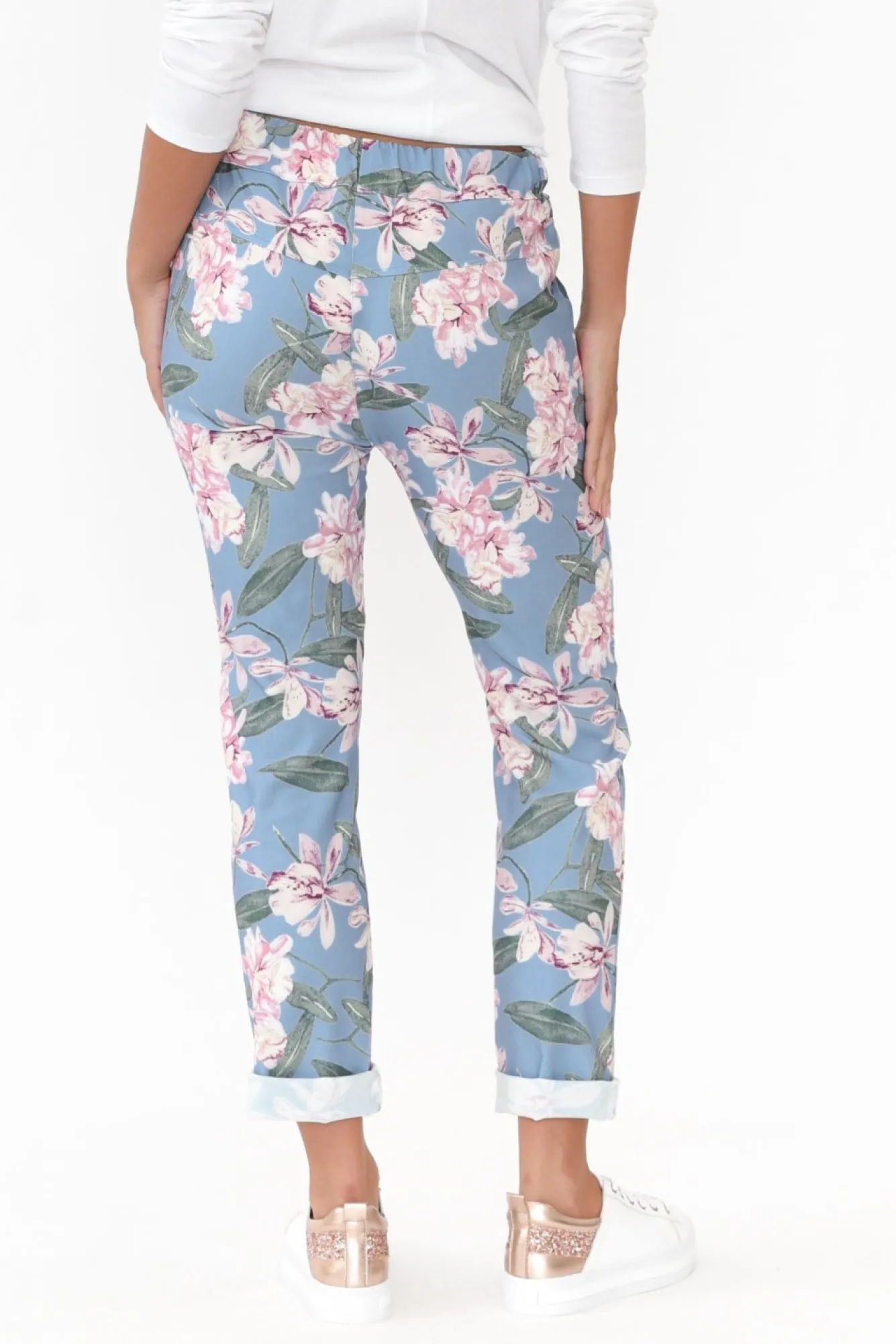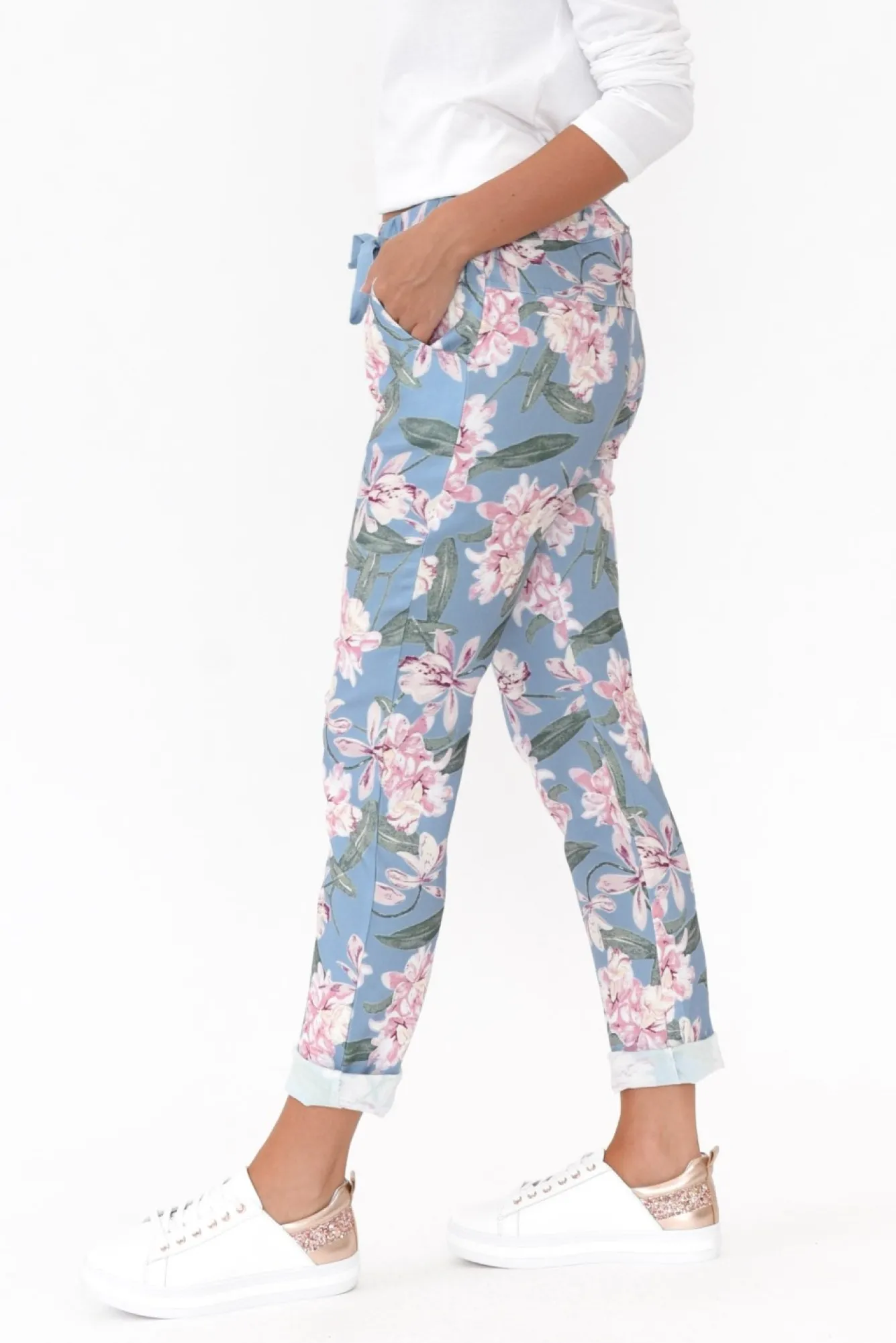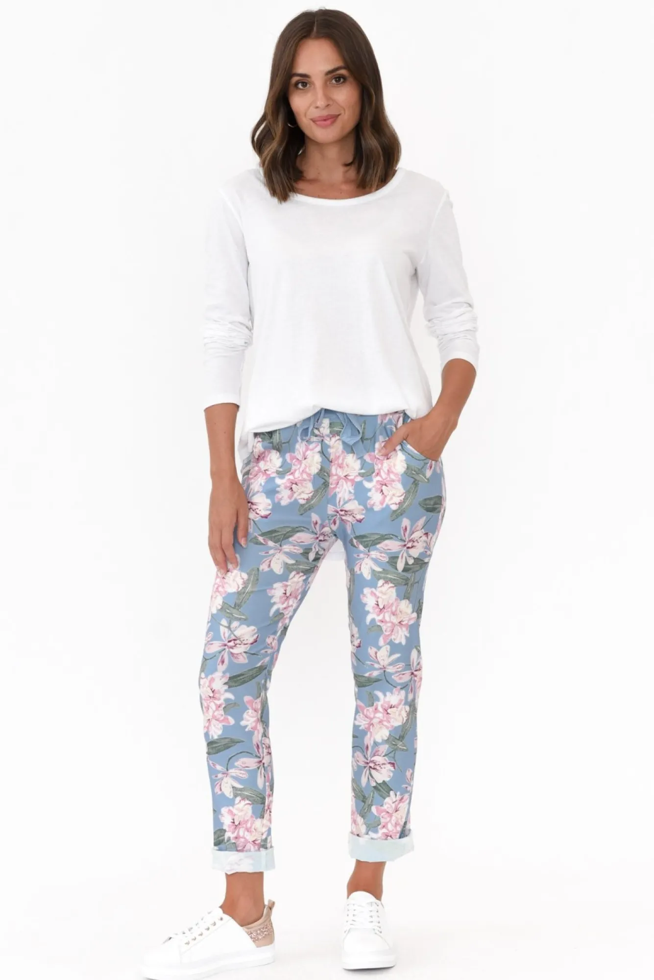 Pants<Cali and Co Shonee Blue Blossom Cotton Stretch Pant
