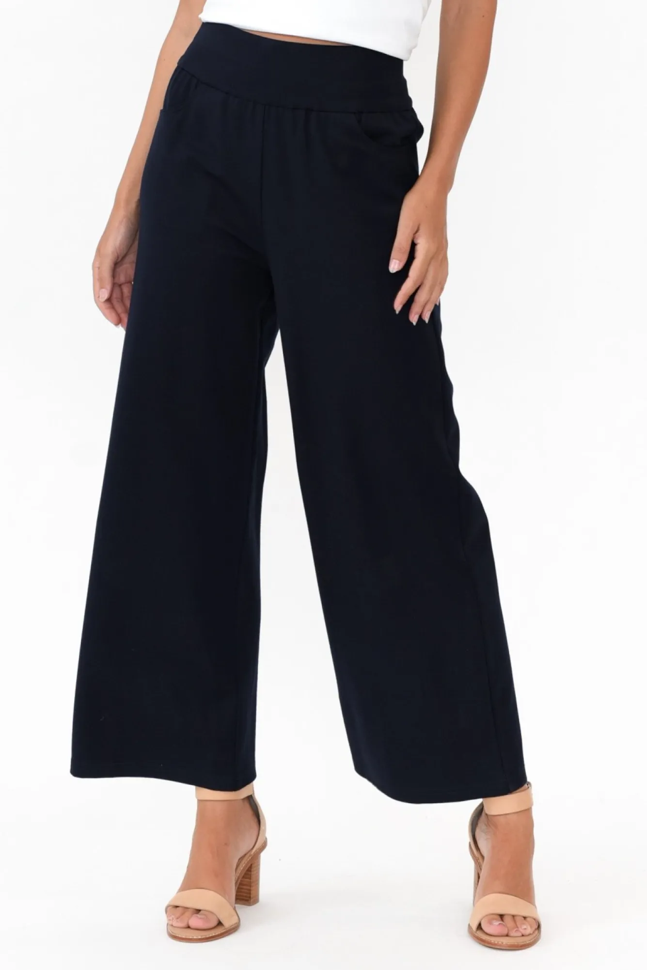 Fit: True To Size. Refer To Size & Fit Tab Below For Specific Size Recommendation NNfabric: 62% Viscose, 32% Nylon, 6% ElastaneNbuttery Soft And Stretchy, Midweight Ponte Fabric With A Slight Sheen For An Elevated LookNNponte Pants Are About To Be Your New Best Friend – They Have All The Comfort And Ease Of A Legging, But Are Made Out Of A Thick And Stretchy Knit Fabric Making Them A Perfect Substitute For JeansNthick Elastic Waistband With Ample StretchNfour Functional Pockets – Two Front And Two BackNNon-Trend Wide-Leg Silhouette NNhemline Skims The Ankle NNcare: Cool Gentle Hand Wash RecommendedNNcolour: Deep Navy Shade