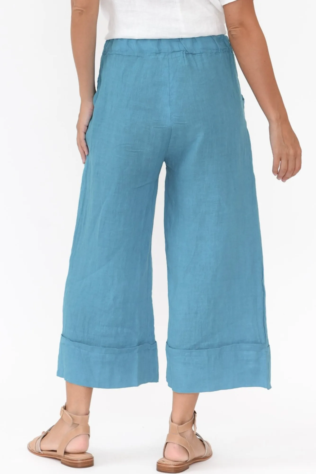 Fit: True To Size. Refer To Size & Fit Tab Below For Specific Size Recommendation NNfabric: 100% LinenNcrafted In Italy From Luxurious Lightweight, Non-Stretch Linen With Wonderful Breathability And A Lovely Woven Hand Feel Nelasticated Waist For Comfort Nflattering Wide-Leg SilhouetteNNtwo Front Pockets NNfolded Hem Falls To A Cropped Length NNNcare: Cool Gentle Machine Wash RecommendedNNcolour: Stunning Blue Shade