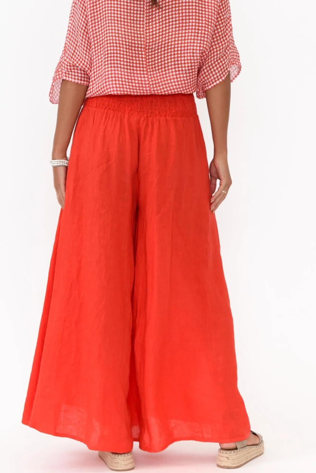 Pants<Donna Donna Rumi Red Wide Leg Linen Pant