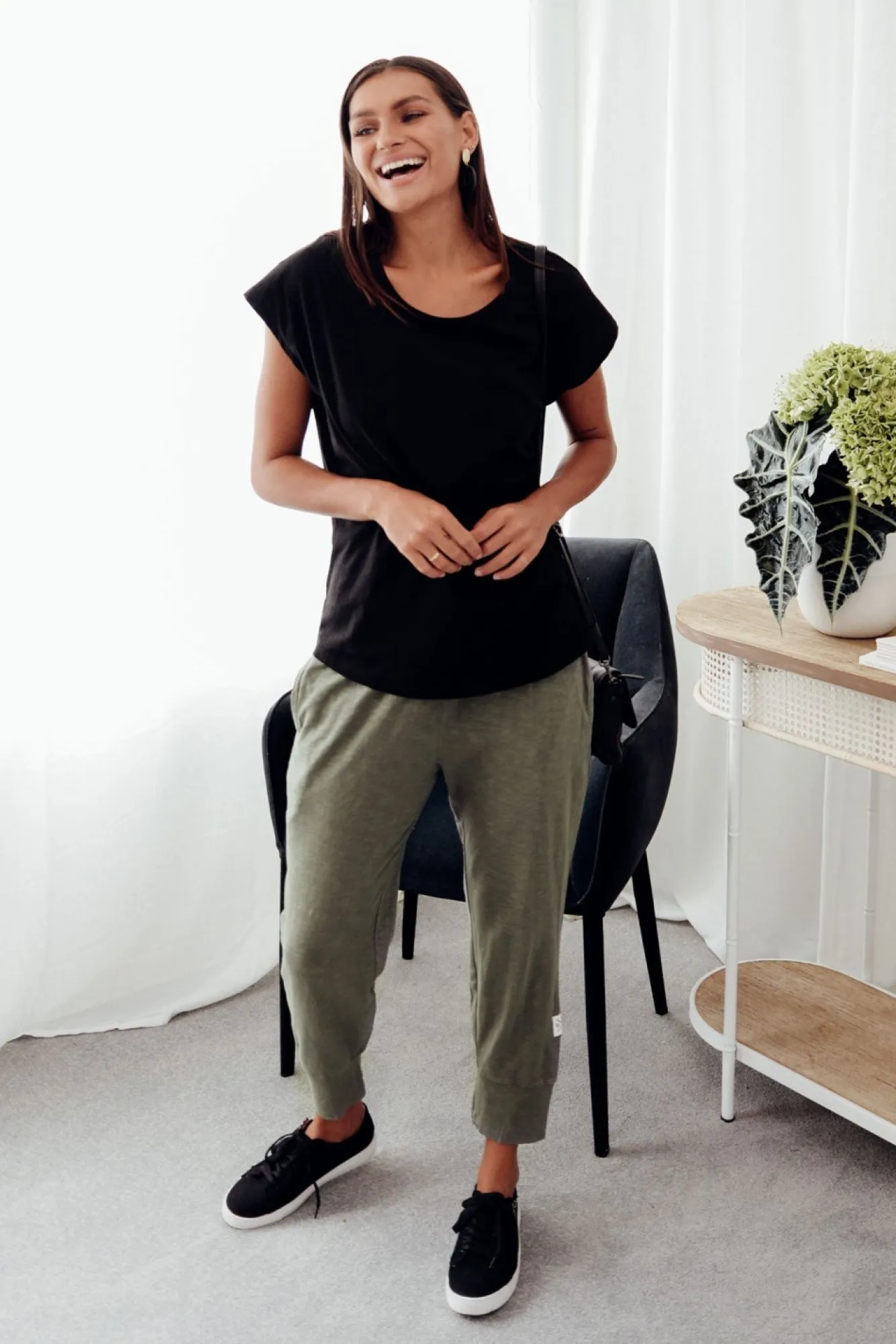 Fit: True. Refer To Size & Fit Tab Below For Specific Size Recommendation NNfabric: 100% CottonNlightweight And Breathable, Cotton Slub Jersey FabricNNthick Elastic Waistband With Cream Coloured DrawstringNrelaxed Jogger StyleNNtwo Deep Hip PocketsNNtapered CuffNNcapri LengthNNNcare: Cool Gentle Machine Wash Recommended – Fabric Is Designed To Fade For A Lived In And Loved LookNNcolour: Washed Khaki Shade