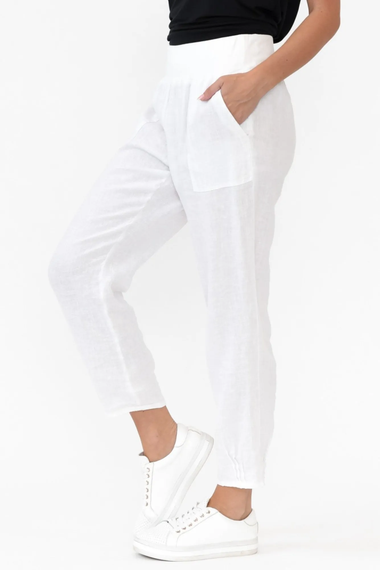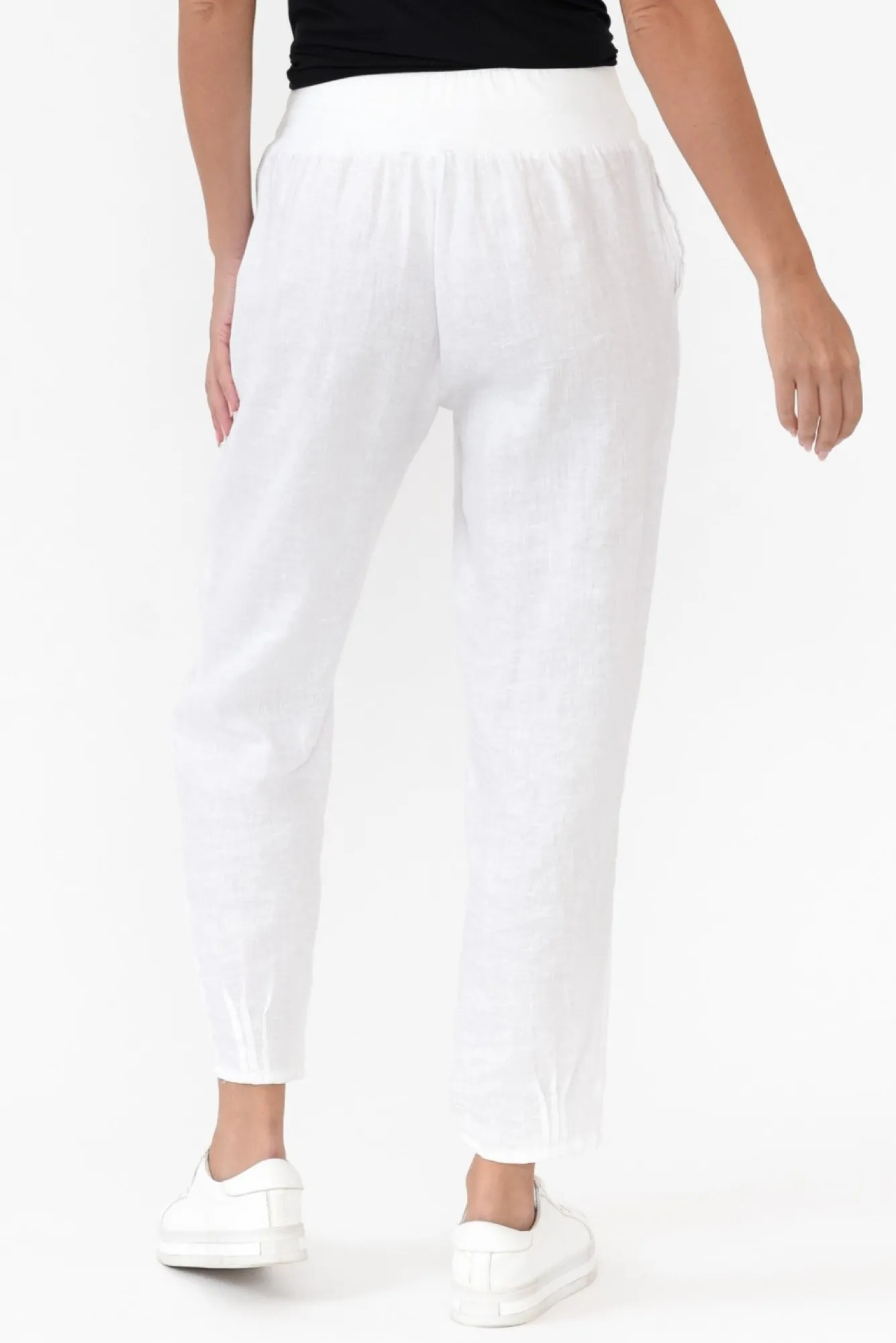 Fit: True. Refer To Size & Fit Tab Below For Specific Size RecommendationNNfabric: Main: 100% Linen Waistband: 95% Cotton, 5% ElastaneNlightweight, Soft And Ultra-Breathable Linen PantNslightly Sheer Fabric, We Recommend Wearing Nude UndergarmentsNdesigned With A Mid-Rise Thick Elasticated Stretchy Waist BandNgathering Detail Falls From The WaistNslim-Fit Leg Offers Ease Of Movement And ComfortNNslightly Cropped Length – Versatile Pant For All Year RoundNdiscover More Trendy Clothes From Gordon Smith ClothesNNNcare: Cool Gentle Hand Wash RecommendedNNcolour: Cool White