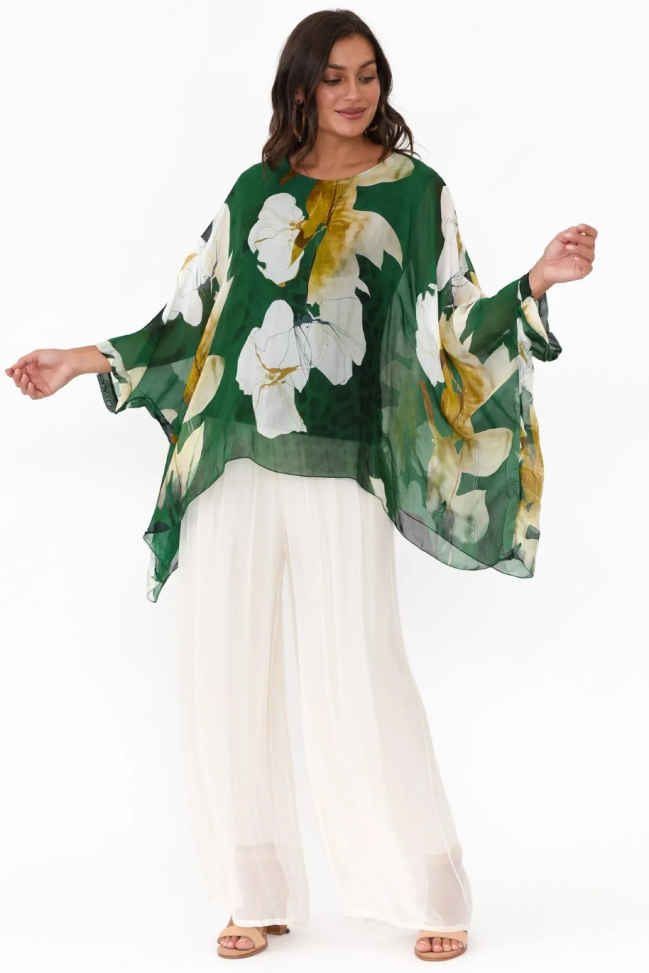 Fit: Runs Large. Refer To Size & Fit Tab Below For Specific Size RecommendationNNfabric: Outer: 70% Viscose, 30% Silk Lining: 95% Viscose, 5% ElastaneNluxurious Lightweight Silky Fabric With A Lovely Soft And Stretchy Lining Nmade In Italy Nsoft And Stretchy, Wide Waistband For Comfort And SupportNNflowy Sheer Silk Overlay With A Complementary Stretchy Lining Ndramatic Wide Leg Silhouette NNfalls To Ankle Length NNNcare: Cool Gentle Hand Wash RecommendedNNcolour: Elegant Ivory Shade