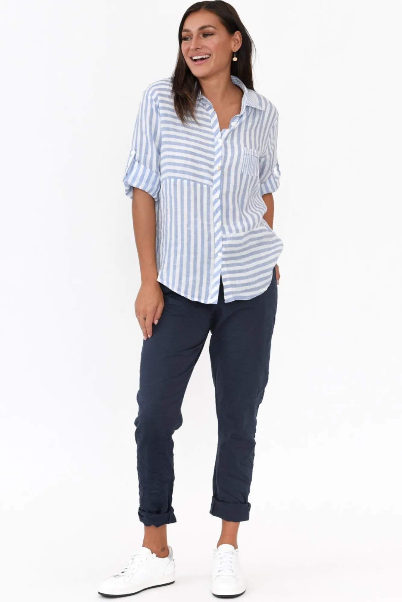 Fit: True To Size. Refer To Size & Fit Tab Below For Specific Size RecommendationNNfabric: 66% Viscose, 30% Cotton, 4% ElastaneNcomfortable Lightweight Cotton Blend With A Subtle Stretch And Crinkle TextureNNfeaturing An Elasticated Waist With An Adjustable Drawstring Nstraight Silhouette With A Slightly Tapered Hem – Wear Cuffed For A Casual Look!Nfaux Fly DetailNfunctional Five-Pocket Design – Two Front Pockets, One Coin Pocket, Two Back PocketsNreaches Modern Cropped LengthNNNcare: Cool Gentle Machine Wash RecommendedNNcolour: True Navy Shade