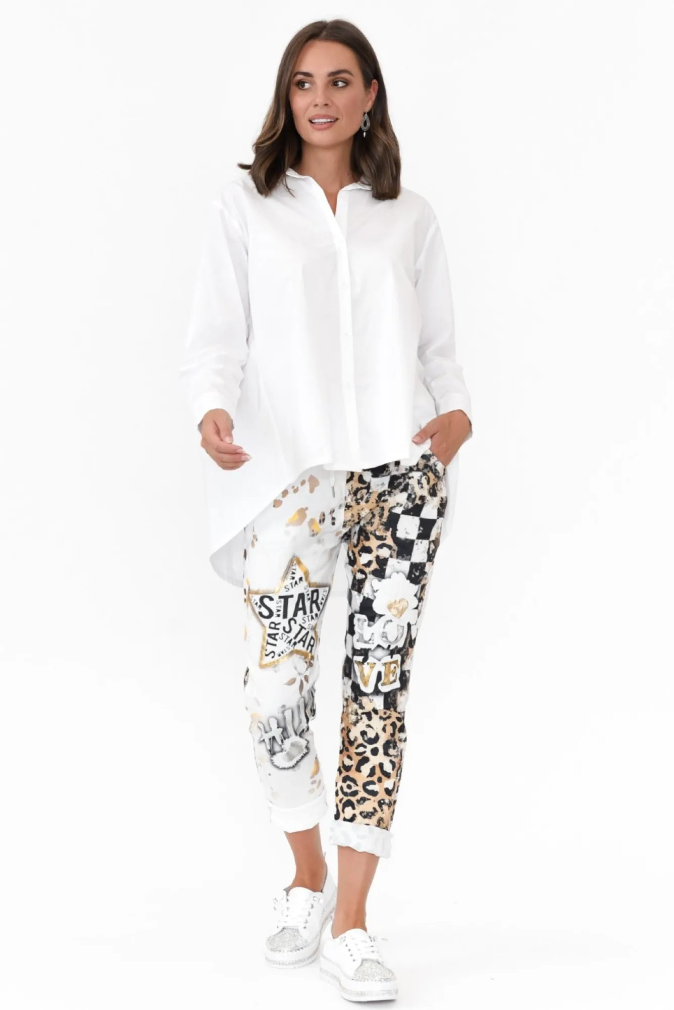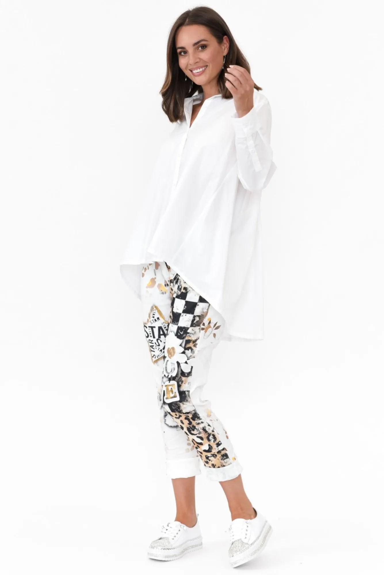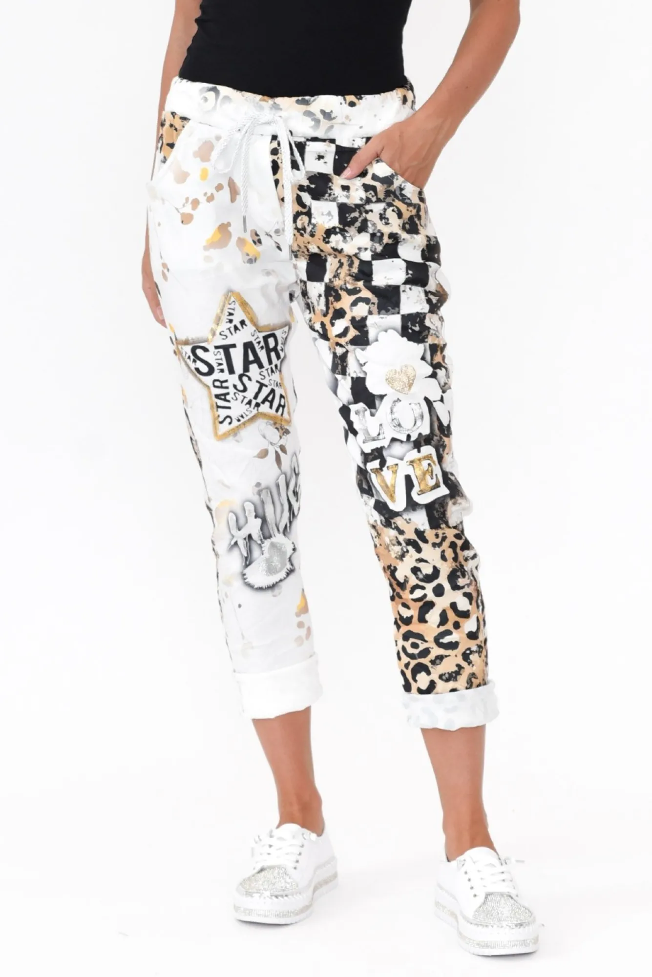 Fit: True To Size. Refer To Size & Fit Tab Below For Specific Size RecommendationNNfabric: 60% Viscose, 40% PolyesterNcrafted In Italy From Fuss-Free Crinkle Fabric With A Comfortable StretchNelasticated Waistband Featuring Metallic Drawstring TieNNeasy-To-Wear Straight Silhouette Tapers At The Hem – Wear Cuffed For A Casual Look!Naddition Of Faux Fly DetailNtwo Functional Front Pockets Nreaches Above Ankle Length NNcare: Cool Gentle Hand Wash RecommendedNNcolour: Crisp White With Bold And Striking Animal And Floral Graphic Print