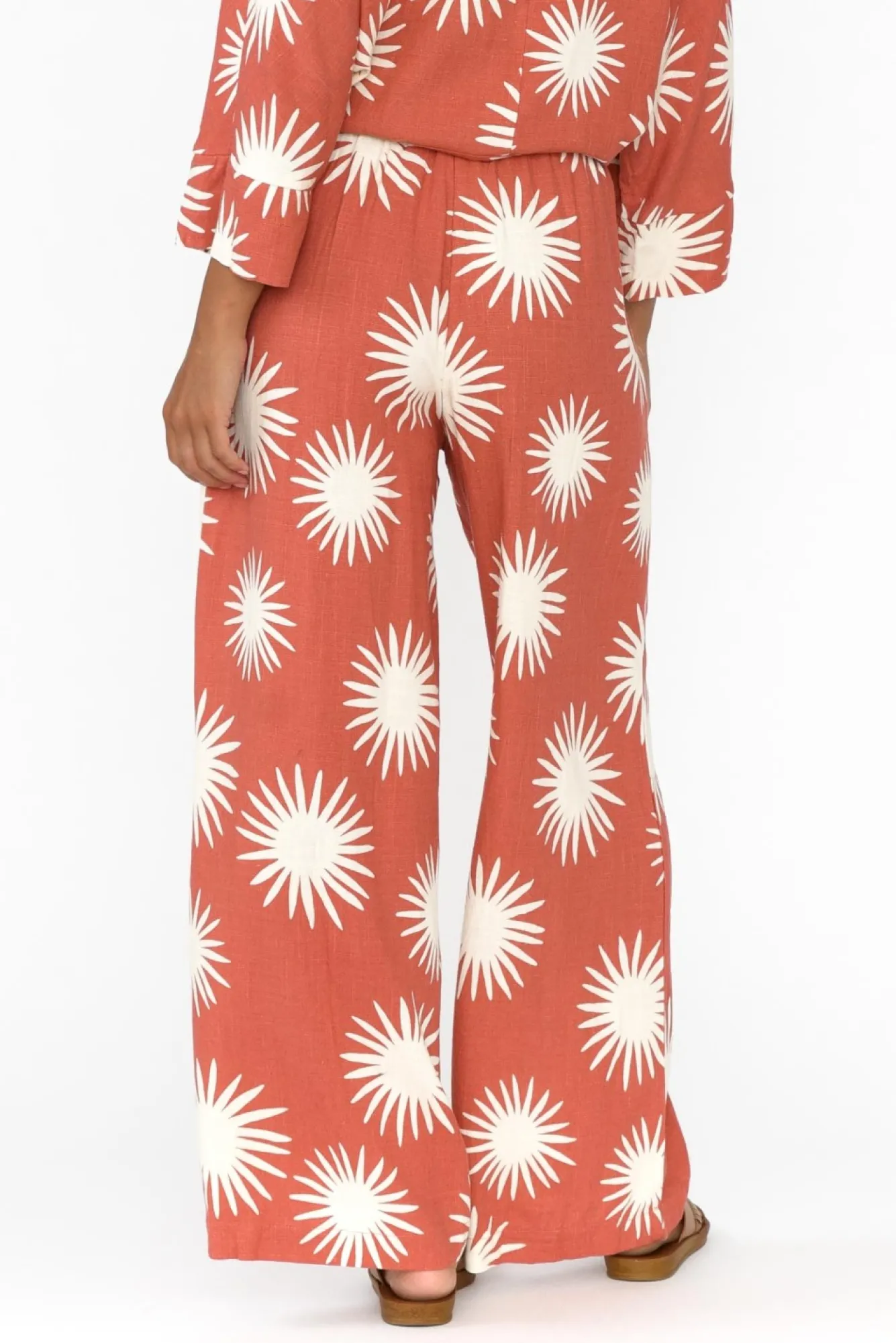 Fit: True To Size. Refer To Size & Fit Tab Below For Specific Size RecommendationNNfabric: 70% Rayon, 30% Linen Nlightweight Fabric Blend With A Soft And Textured Woven Hand Feel Nstretch Waistband With An Adjustable Drawstring For All-Day Comfort Ntwo Handy Hip PocketsNrefined Wide-Leg Silhouette Nstraight Hem Falls To A Full Length Below The Ankles NNcare: Cool Gentle Hand Wash RecommendedNNcolour: Rust Base With A Cream Flower Overlay