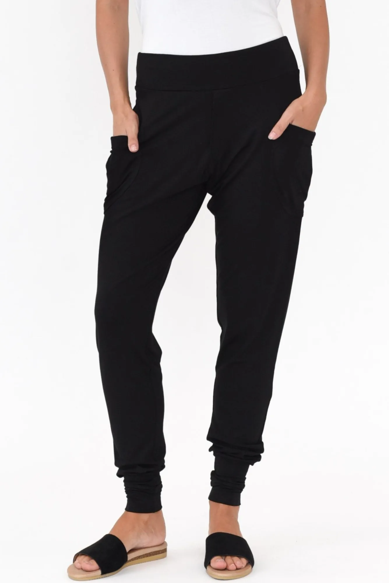 Fit: True To Size. Refer To Size & Fit Tab Below For Specific Size RecommendationNNfabric: 93% Bamboo 7% ElastaneNultra-Comfortable Lightweight, Breathable And Stretchy Bamboo Fabric With A Soft Hand Feel NNwide Elasticated Waistband For SupportNslouchy Jogger Silhouette Enhanced By The Tapered Hem NNtwo External Pockets Located At The Hips NNreaches Ankle Length NNNcare: Cool Gentle Machine Wash RecommendedNNcolour: Midnight Black