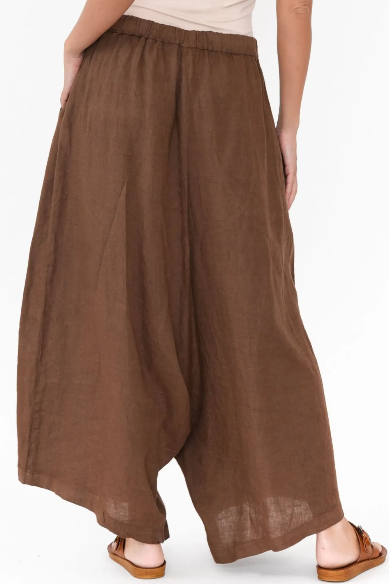 Fit: True To Size. Refer To Size & Fit Tab Below For Specific Size Recommendation NNfabric: 100% LinenNcrafted In Italy From Lightweight, Breathable And Non-Stretch Linen With A Classic Textured Hand FeelNNelasticated Waist For Comfort And SupportNdramatic Wide-Leg Design Creates A Culotte Silhouette Nexaggerated Drop Crotch Falls Below Knee Length Ntwo Front Pockets Located Near The Hips NNstraight Hemline Falls To Ankle Length NNNcare: Cool Gentle Hand Wash RecommendedNNcolour: Chocolate Brown Shade