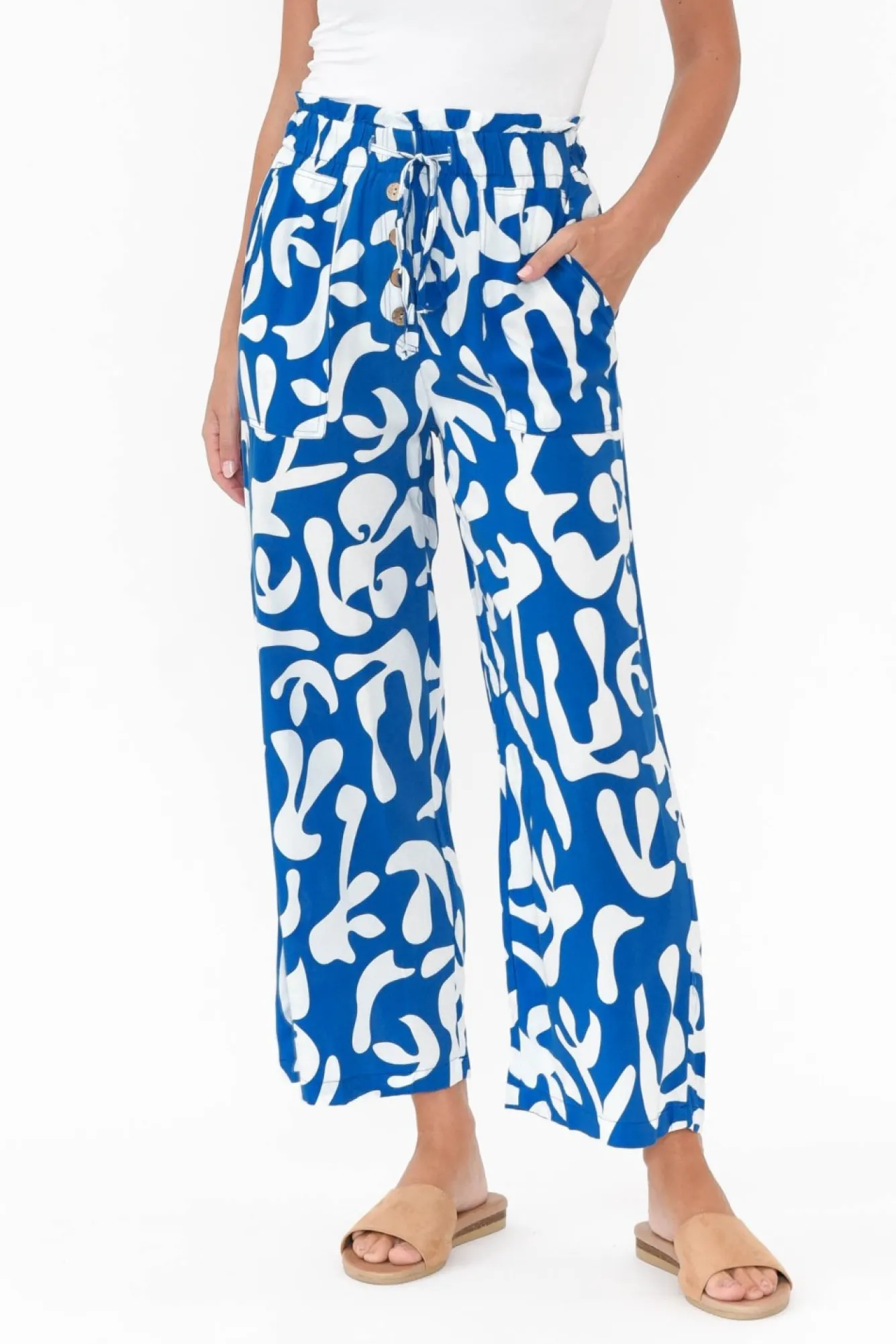 Fit: True To Size. Refer To Size & Fit Tab Below For Specific Size RecommendationNNfabric: 100% RayonNsoft And Smooth, Lightweight, Non-Stretch FabricNNelasticated Paper Bag-Style Waistband With An Adjustable Drawstring Neveryday Relaxed Straight-Leg Silhouette Elevated By Faux Button Fly DetailNNtwo Feature Front PocketsNreaches Ankle LengthNNcare: Cool Gentle Hand Wash RecommendedNNcolour: Ocean Blue And White Abstract Print