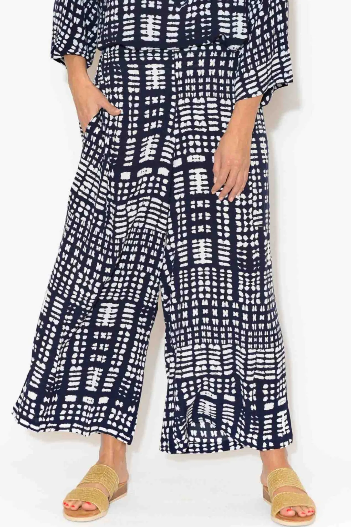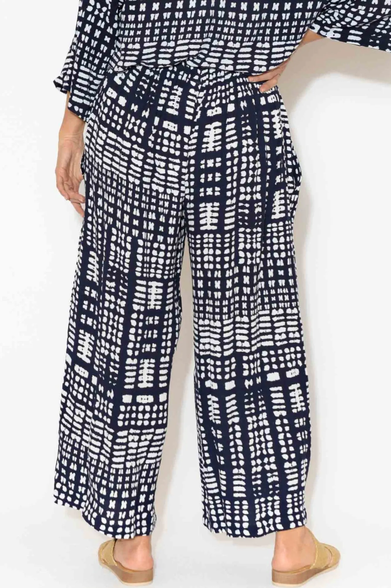 Pants<Portobello Jolene Navy Abstract Print Crinkle Pant