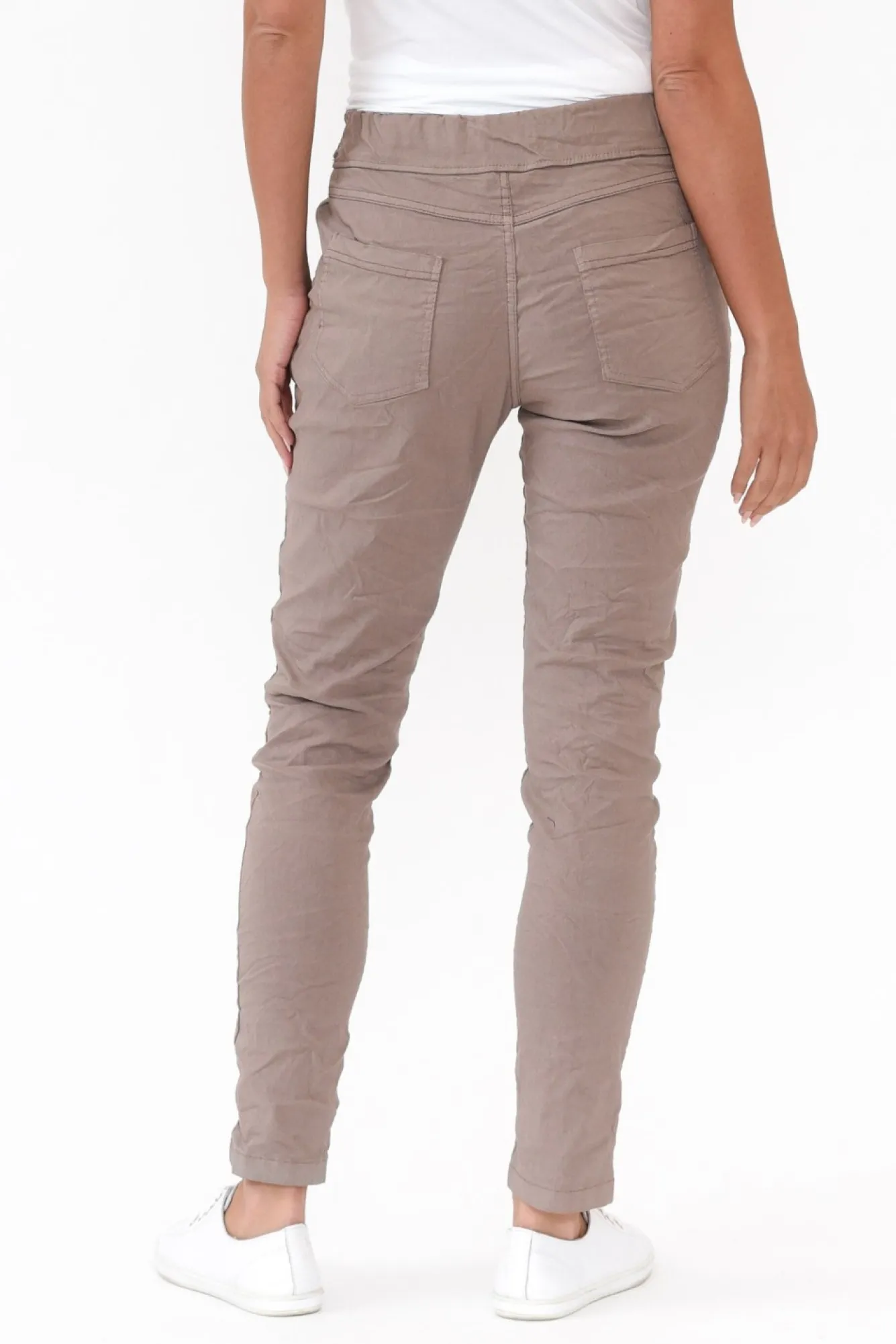 Fit: True To Size. Refer To Size & Fit Tab Below For Specific Size RecommendationNNfabric: 77% Viscose, 18% Nylon, 5% ElastaneNmade In Italy From Lightweight, Stretchy Fabric With A Textured Hand FeelNNwear With A Relaxed Crushed Effect Or Steam For A Sleek LookNstretchy, Ruched Elastic Waistband With A Drawstring Complemented By A Faux FlyNmid-Rise Waist Sits Just Below The NavelNversatile Straight Leg Silhouette Make These A True Wardrobe Staple NNfour Functional Pockets – Two At The Front, Two At The Back Nfull Length Falls To The Ankle NNcare: Cool Gentle Machine Wash RecommendedNNcolour: Neutral Taupe Shade
