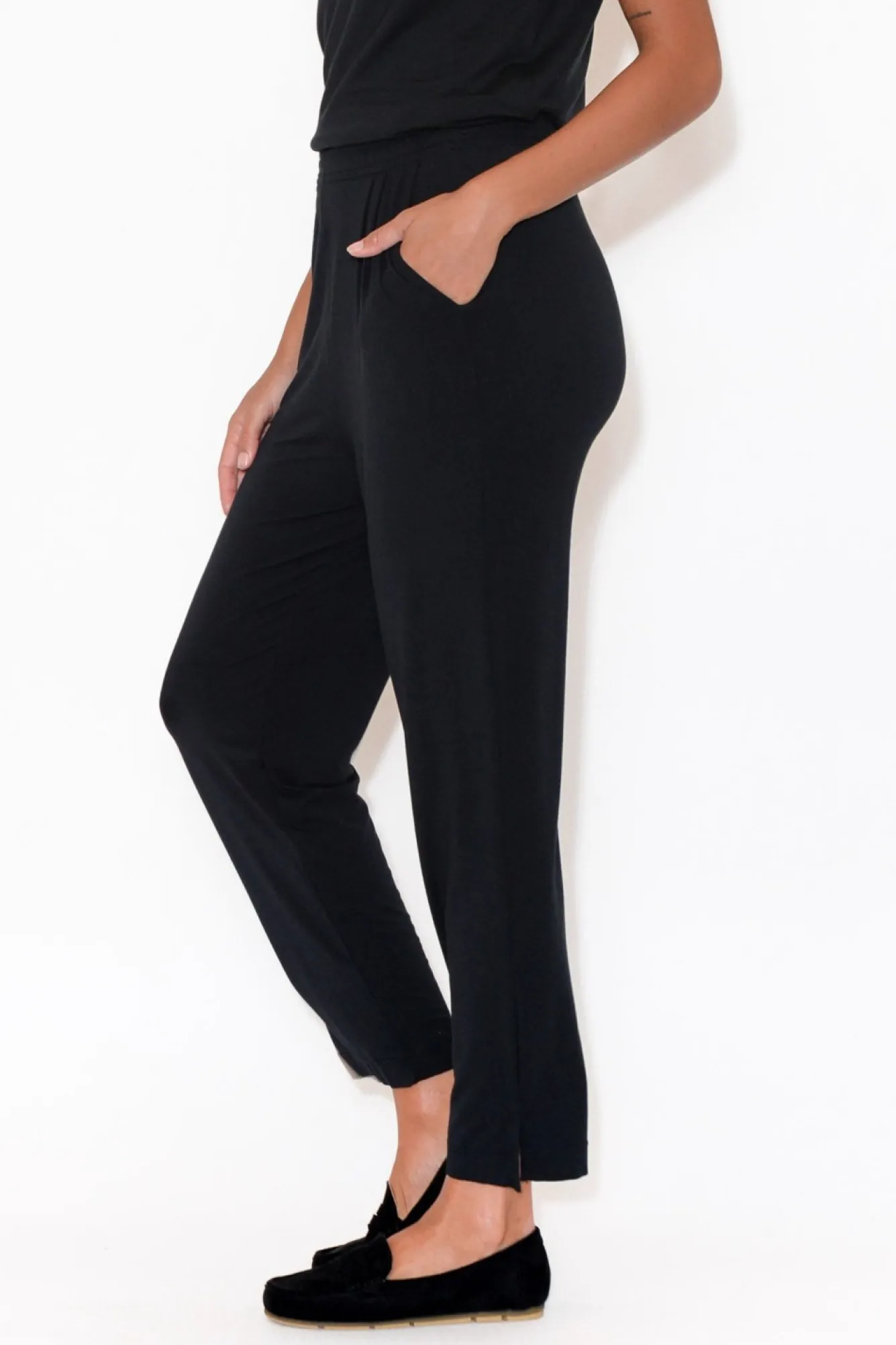 Fit: Runs Small. Refer To Size & Fit Tab Below For Specific Size Recommendation NNfabric: 96% Micromodal®Air, 4% LycraNlightweight, Ultra-Soft And Stretchy Micro Modal Fabric Made From Sustainably Sourced Beechwood FibresNtwo Side PocketsNNpin Tuck Detail At FrontNrelaxed Straight Leg For Slimming EffectNslightly Cropped Length With Small Side Splits At HemNNcare: Cool Gentle Machine Wash RecommendedNNcolour: Black