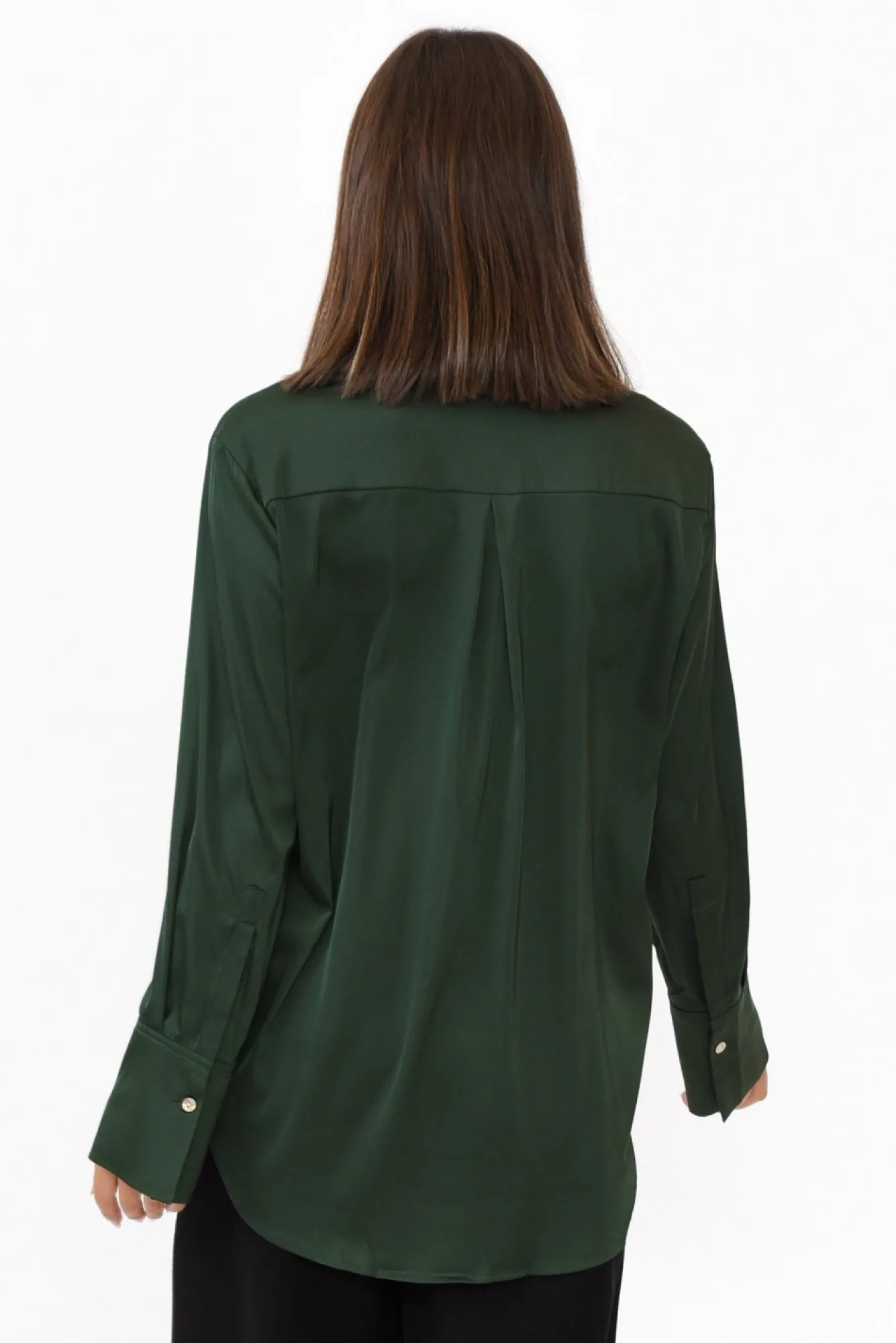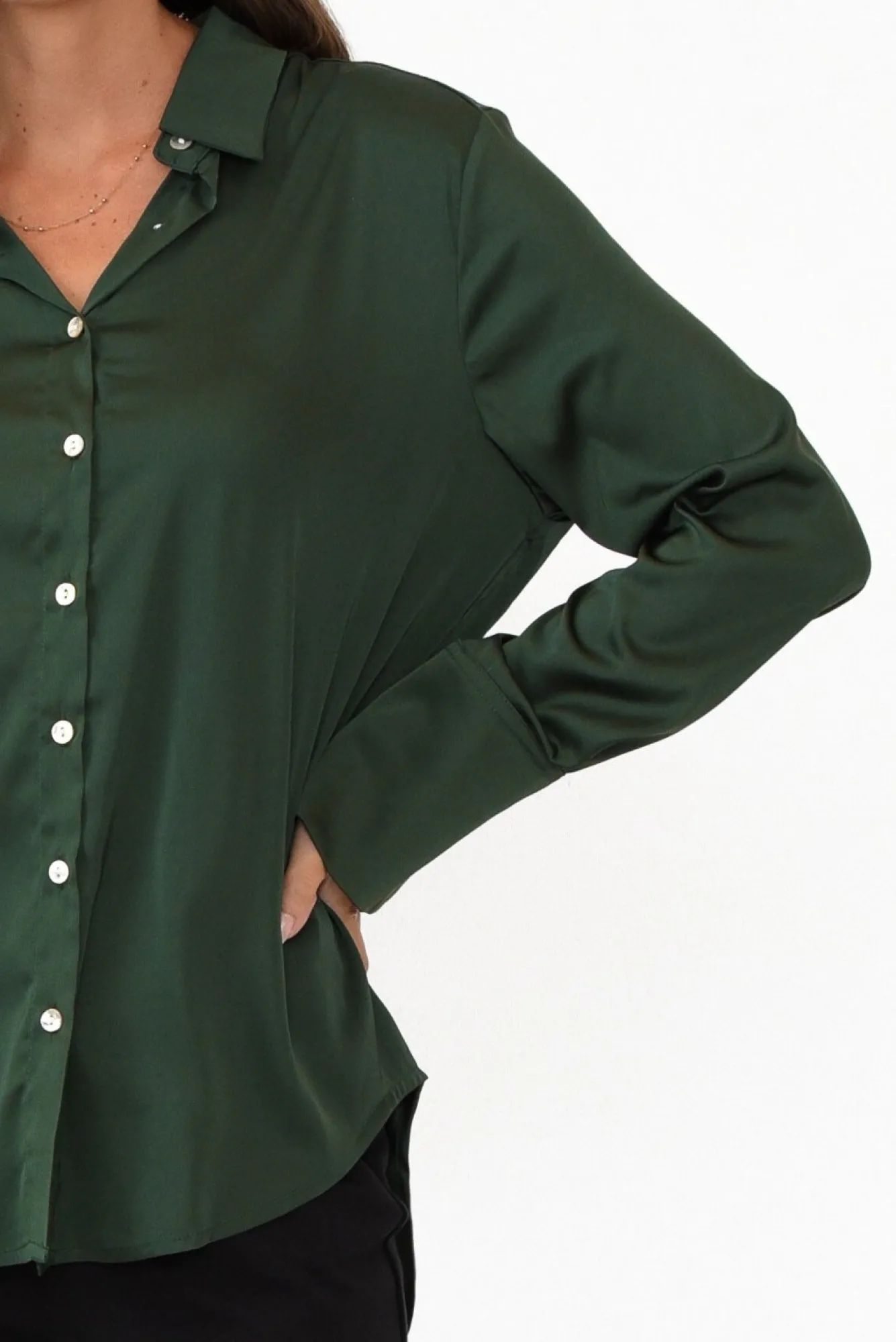 Fit: True To Size. Refer To Size & Fit Tab Below For Specific Size RecommendationNNfabric: 100% PolyesterNcrafted With A Luxurious Satin Fabric Featuring Lightweight And Non-Stretch Qualities And A Sheen Finish NNcollared Neckline Flows To A Buttoned Front With Feature Pearlescent ButtonsNfull-Length Sleeves Finished With A Flared Button Cuff NNsubtle A-Line SilhouetteNNcurved Hi-Lo Hem Provides Falls To Hip-LengthNNNcare: Cool Gentle Machine Wash RecommendedNNcolour: Stunning Forest Green