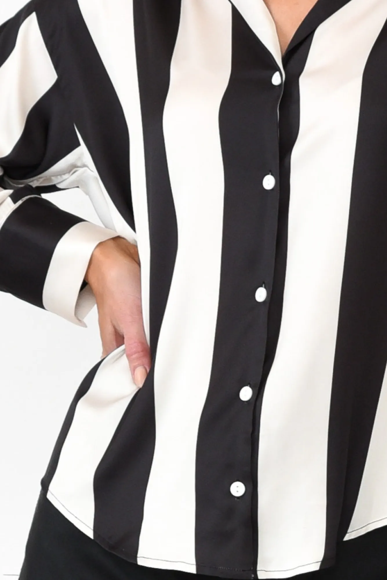 Shirts<Slate the Label Rosita Black Stripe Satin Collared Shirt