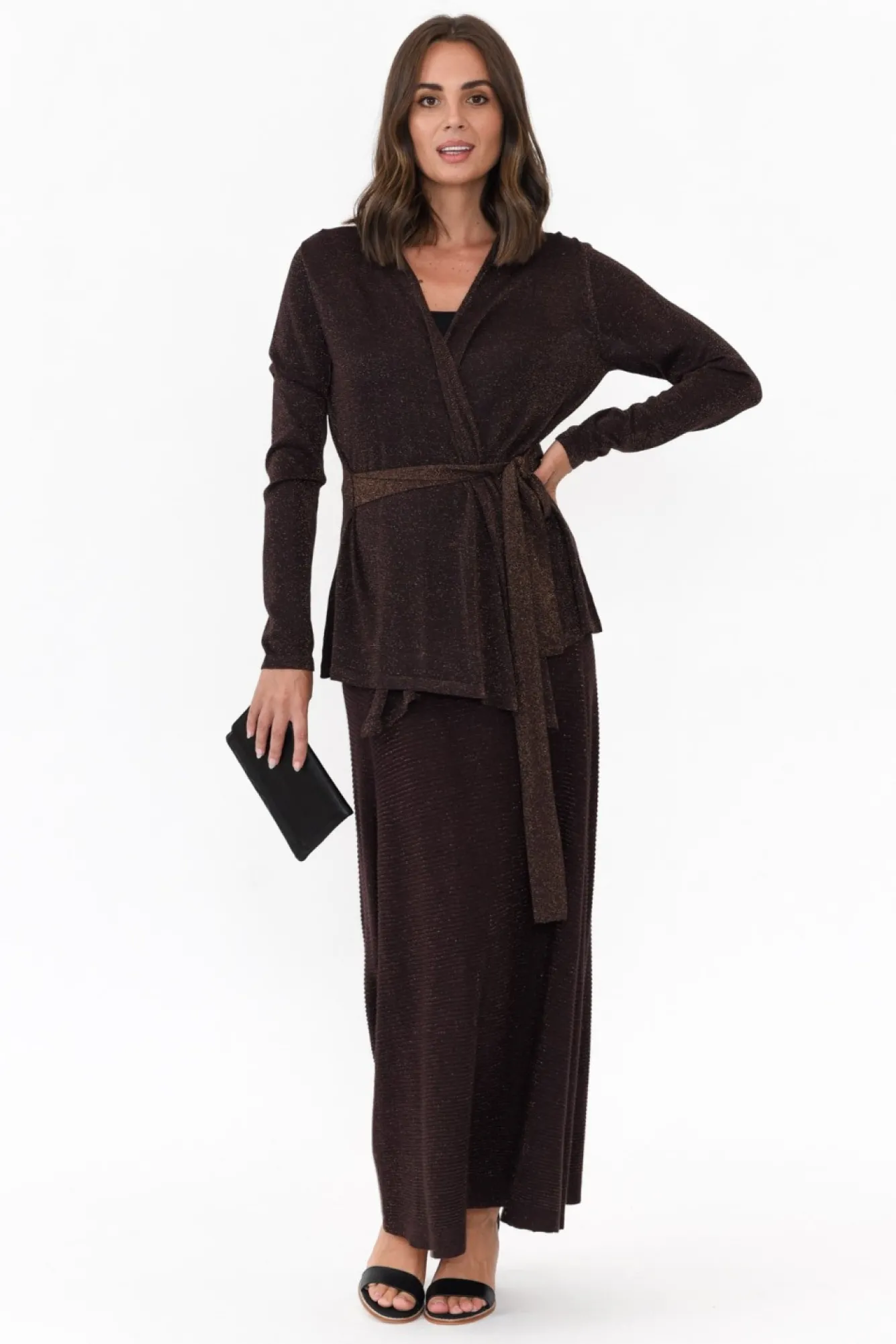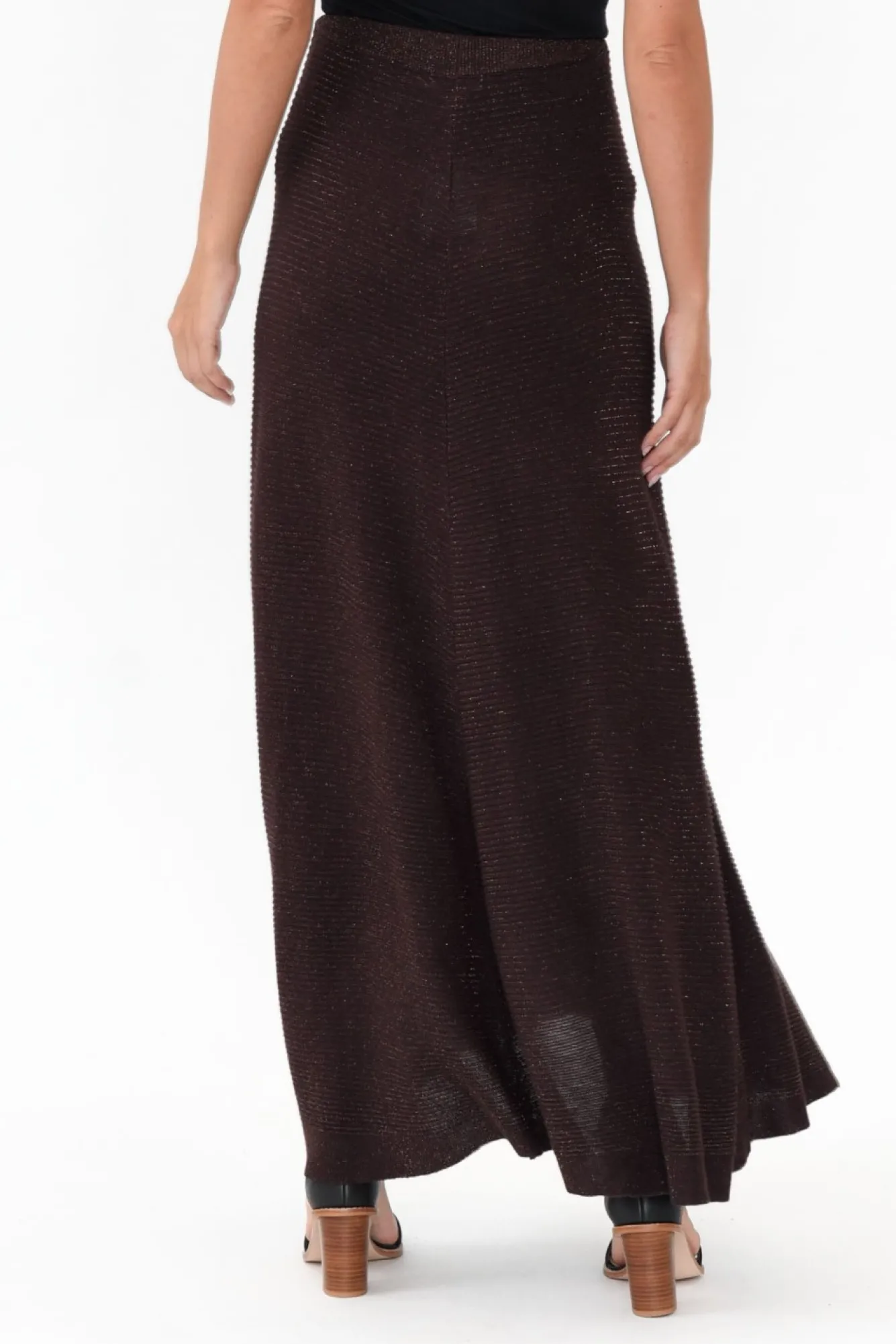 Fit: True To Size. Refer To Size & Fit Tab Below For Specific Size Recommendation NNfabric: 100% Polyester Na Stunning Knitted Skirt Made From Lightweight And Stretchy Ribbed Knitted FabricNwoven With A Gold Metallic Thread For An Elevated Look Nelasticated Waistband For Comfort And Support Ntimeless A-Line Silhouette With Flaring Near The Hem Nfalls To Midi To Maxi Length NNNcare: Cool Gentle Hand Wash RecommendedNNcolour: Warm Chocolate Shade With Metallic Thread Detailing NNNnotes: When Stretched, Fabric Can Appear Slightly Sheer – For Ultimate Coverage We Recommend Pairing With Nude Underwear