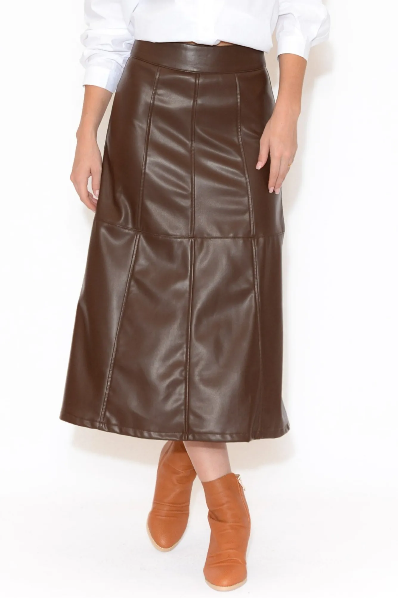 Be the first to review “Skirts<Brave u0026 True Matrix Chocolate Faux Leather Midi Skirt” Cancel reply