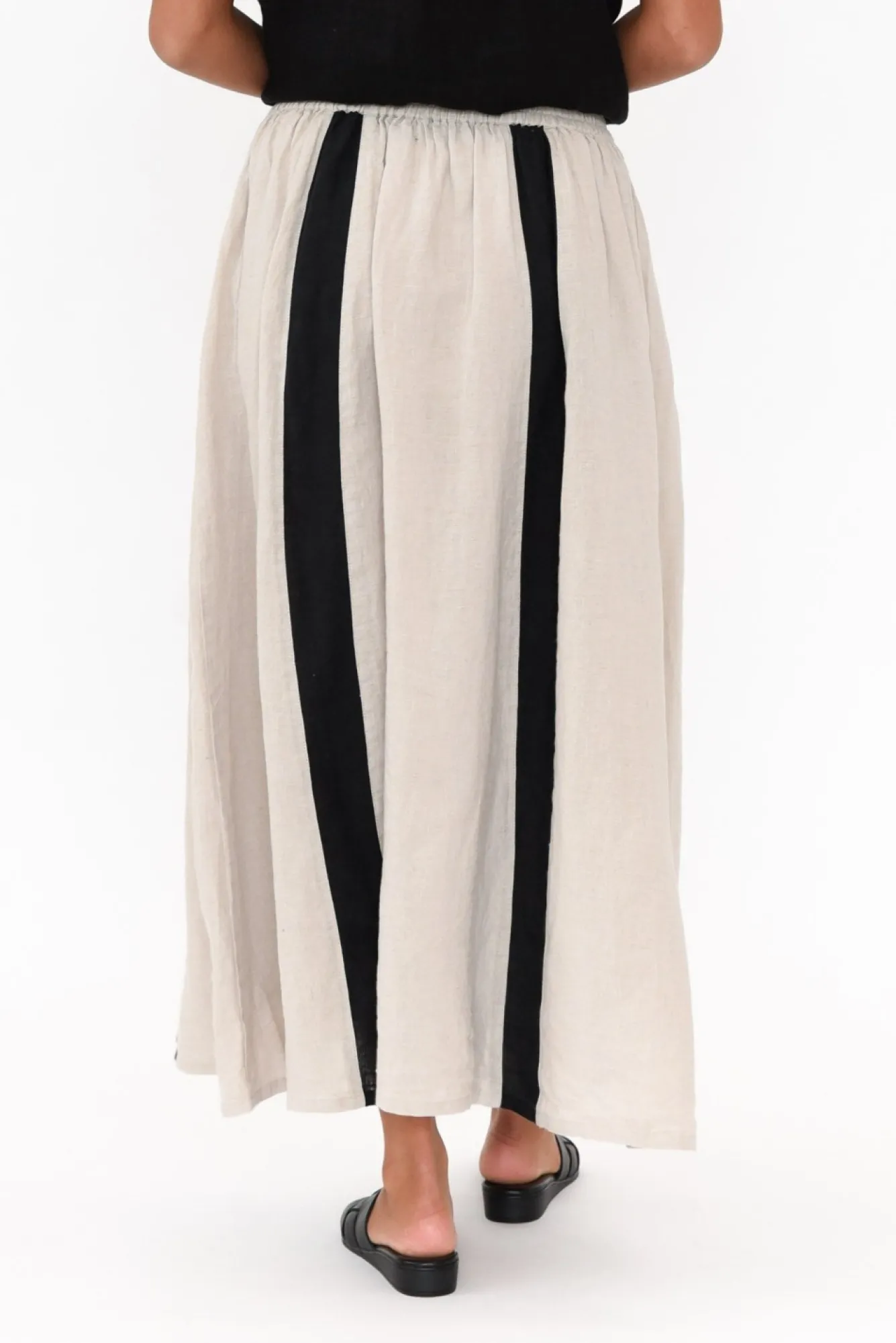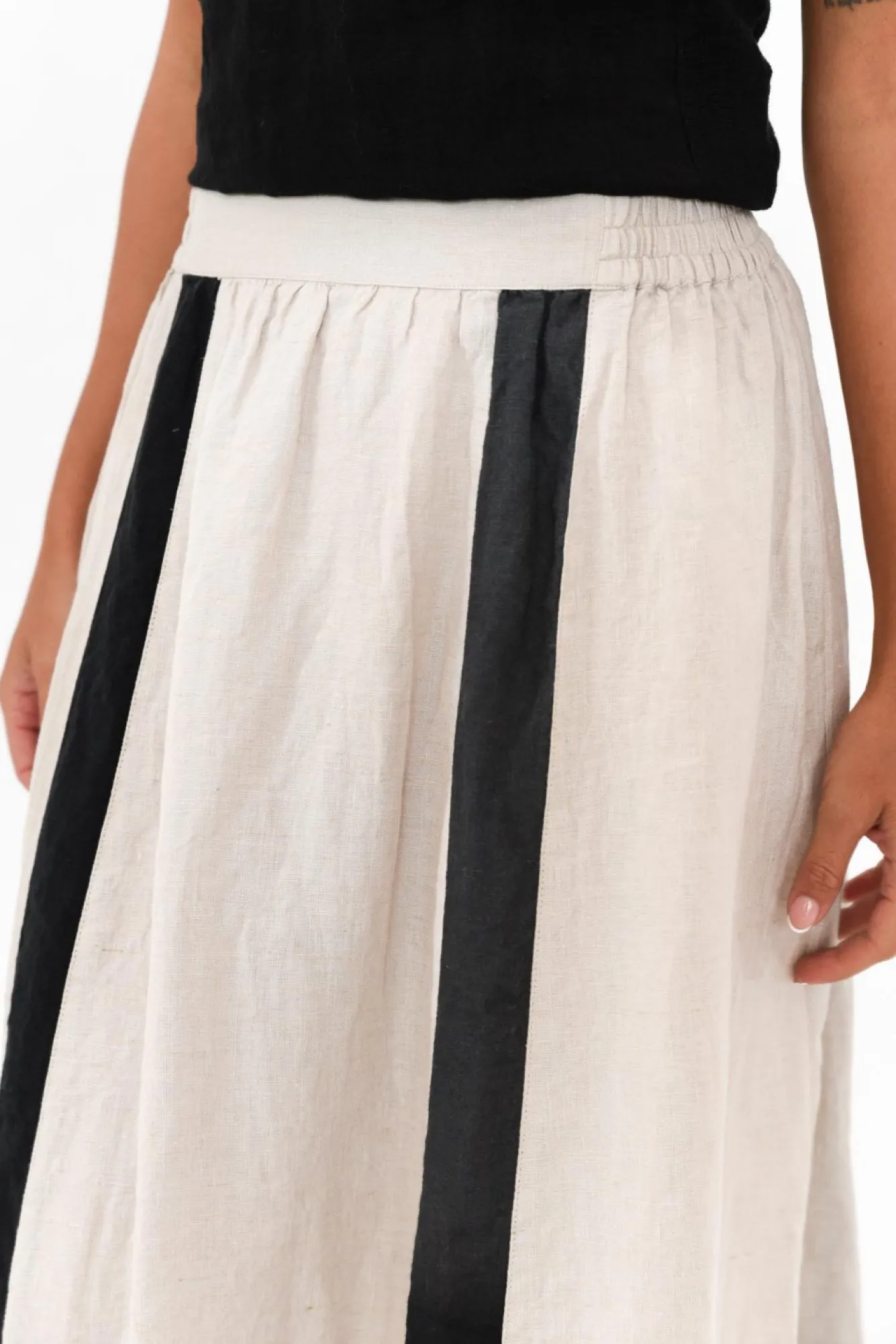 Fit: True To Size. Refer To Size & Fit Tab Below For Specific Size RecommendationNNfabric: Shell: 100% Linen Lining: 100% CottonNlightweight And Breathable Linen With The Classic Textured Woven Hand FeelNNsoft Cotton Lining For Extra Comfort And Coverage Nstretchy Elastic Waistband Flatters The WaistNNcontrast Black Panelling At The Front And Back Add DimensionNbillowy A-Line Silhouette Flows Over The Hips Without ClingingNstraight Hem Length Falls To A Midi Length NNcare: Cool Gentle Machine Wash RecommendedNNcolour: Natural Shade With Black Panelling