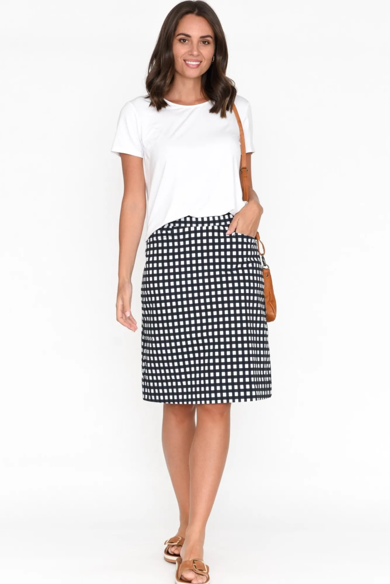Fit: True To Size. Refer To Size & Fit Tab Below For Specific Size RecommendationNNfabric: 69% Cotton, 27% Nylon, 4% Elastane Nultra-Lightweight, Breathable And Crisp Cotton Blend Fabric With The Perfect Amount Of Stretch For A Comfortable Look And Feel NNfirm Stretch Elasticated Waistband NNclassic A-Line Silhouette With Subtle Flaring Towards The Hem NNtwo Angular Front Pockets Located At The Hips NNfeaturing Two Back Pockets For Added Practicality Nstraight Hemline Reaches Above Knee Length And Features A Small Back Split NNNcare: Cool Gentle Machine Wash RecommendedNNcolour: Timeless Navy And White Check Print