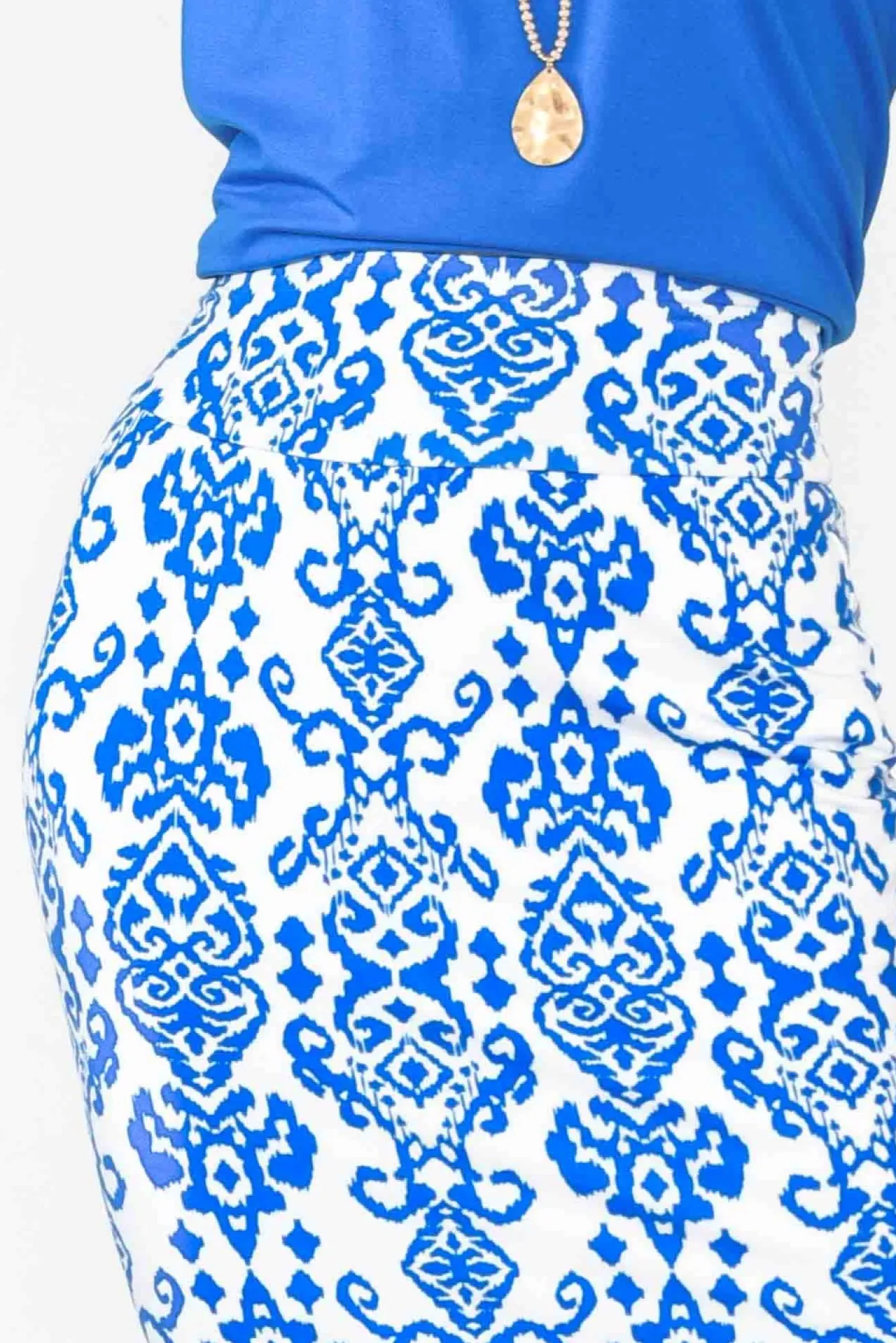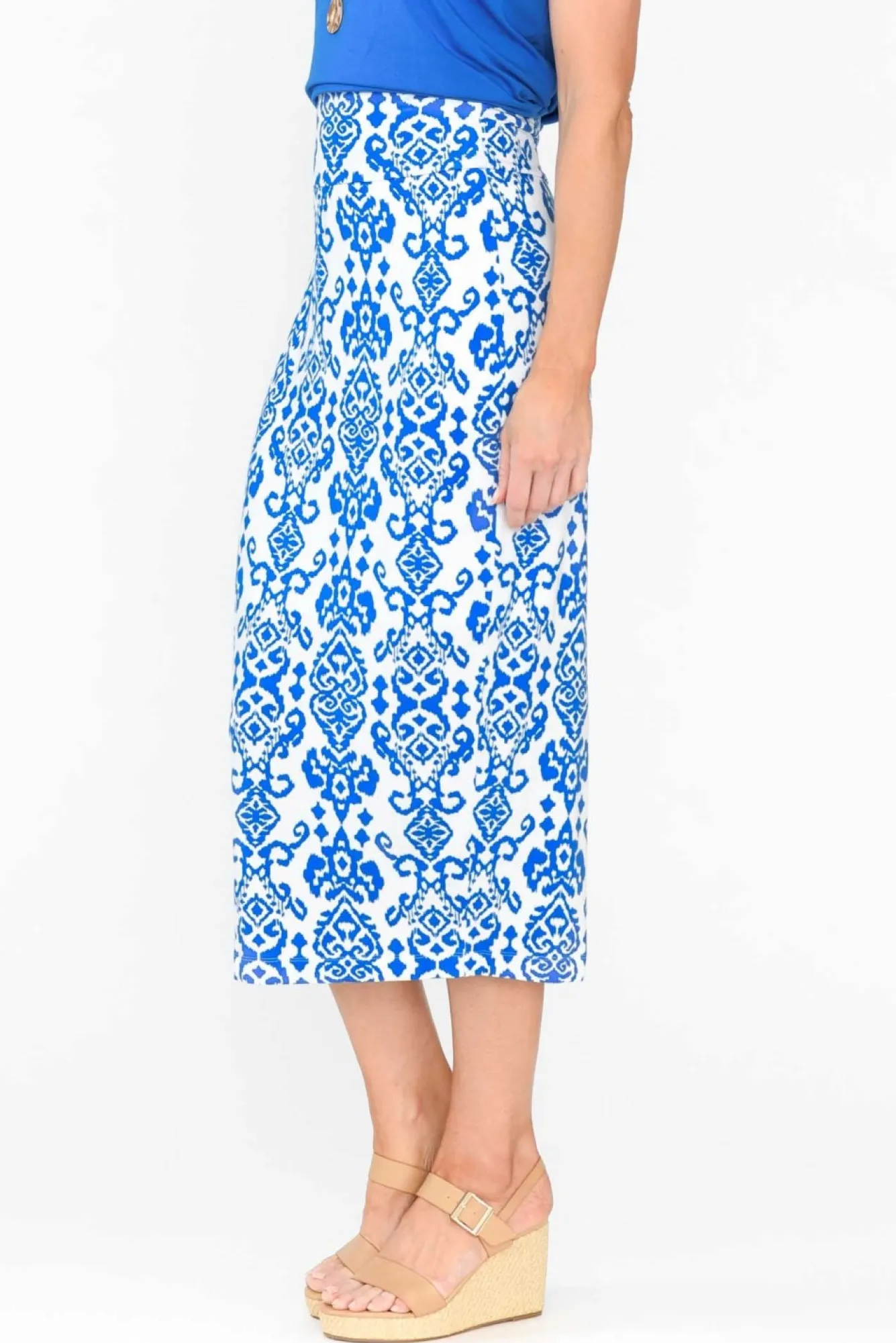 Fit: True. Refer To Size & Fit Tab Below For Specific Size RecommendationNNfabric: 93% Bamboo 7% ElastaneNultra-Soft And Stretchy Bamboo Fabric With A Midweight Feel And Wonderful Breathability For All-Day Comfort NNno-Dig Waistband Enhanced By A Wide And Stretchy Design NNlined To The Knee For A Smooth And Comfortable FitNNtimeless Double-Layered Tube Skirt SilhouetteNNback Seam Leads To A Split At The Hem For Ease Of Movement NNwear On The Hips For A Maxi Look Or At The Waist For Midi Fit NNNcare: Cool Gentle Machine Wash RecommendedNNNcolour: Cobalt Ikat Print Over A Crisp White Base