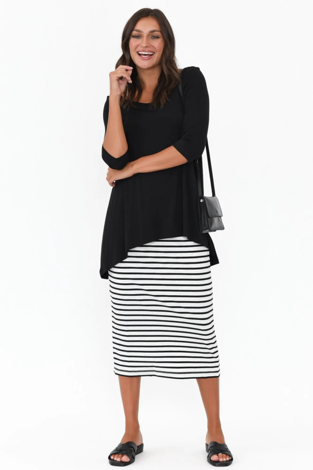 Fit: True. Refer To Size & Fit Tab Below For Specific Size RecommendationNNfabric: 93% Bamboo 7% ElastaneNNmidweight, Silky-Soft And Breathable Bamboo-Stretch FabricNNwide, Flat, Soft And Stretchy No-Dig WaistbandNlined To The Knee For A Smooth And Comfortable FitNNstraight, Double-Layered Tube Skirt SilhouetteNNback Slit Allows For Easy-Breezy MovementNmaxi Length – Wear High On The Waist Like Our Models For A Flattering Midi-Length LookNNNcare: Cool Gentle Machine Wash RecommendedNNNcolour: Grey Base With Black Stripes